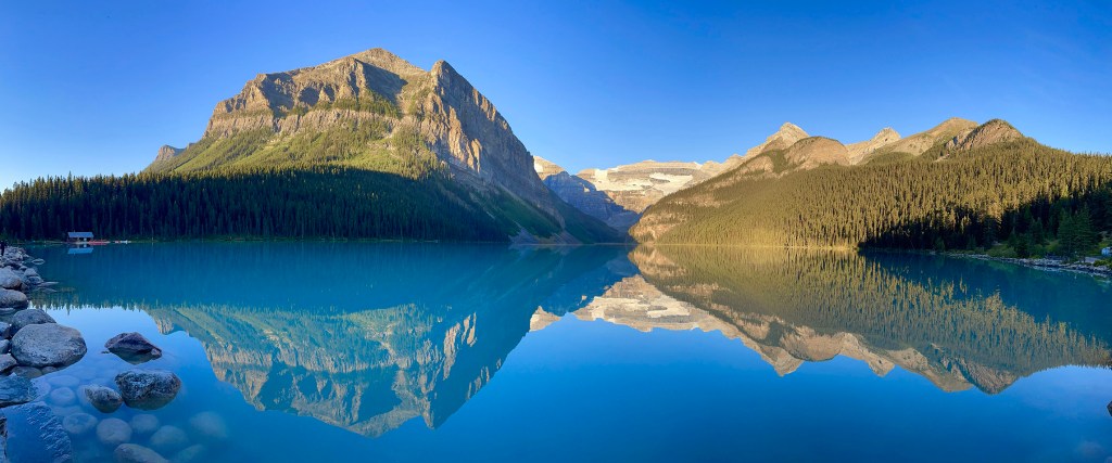 Autant vous avertir que pour voir ces petits bijoux, (surtout en juillet et août), il faut être organisés et bien anticiper sa venue. En effet, depuis l’été 2023, l’accès au lac Moraine est interdit aux véhicules privés et il ne peut être rejoint que par navettes (les billets partent comme des petits pains). Pour le Lake Louise, il est fortement conseillé de prendre un shuttle également car le parking sur place (qui peut déjà être plein à 6h du matin) est très petit et il y a juste quelques places pour les camping cars. Sans navette, il est quasi certain de faire des heures de queue pour attendre une place de stationnement qui se libère.