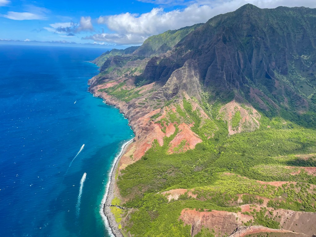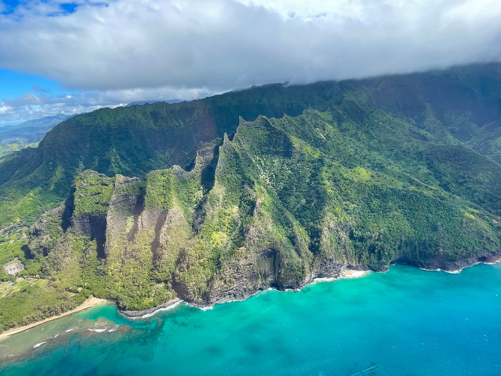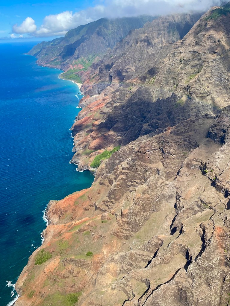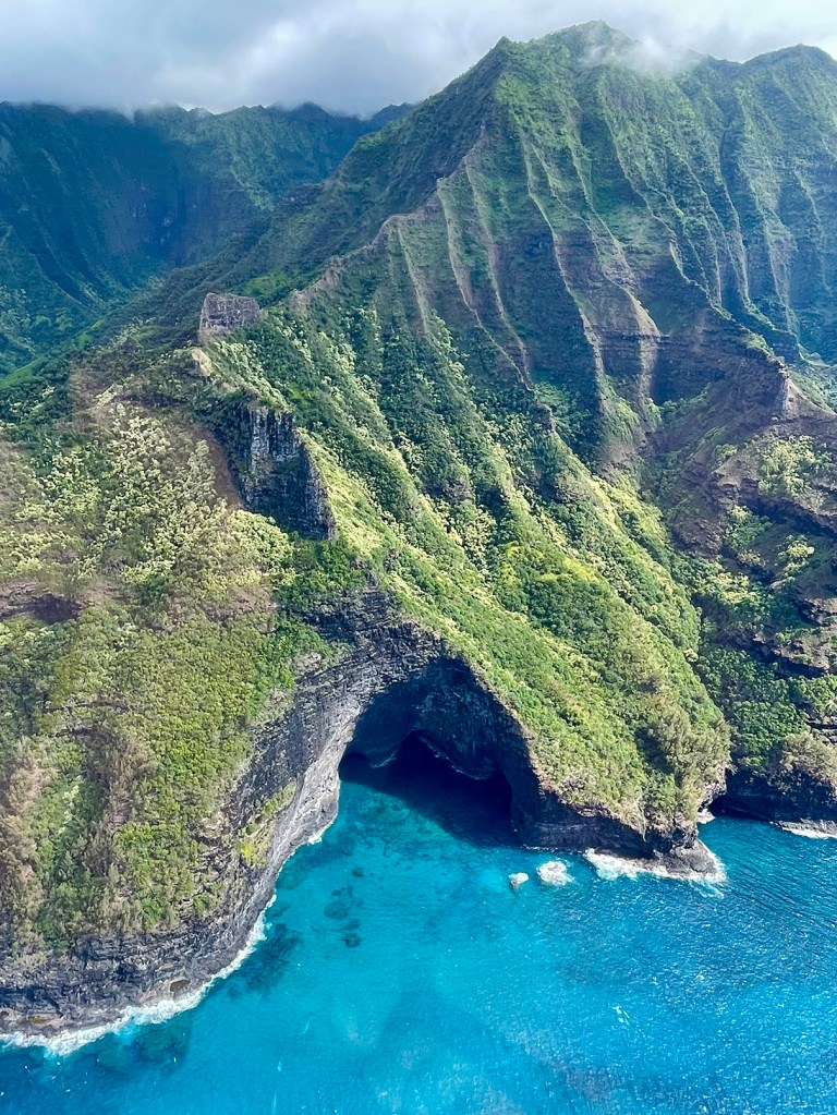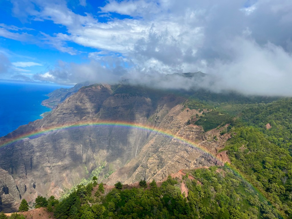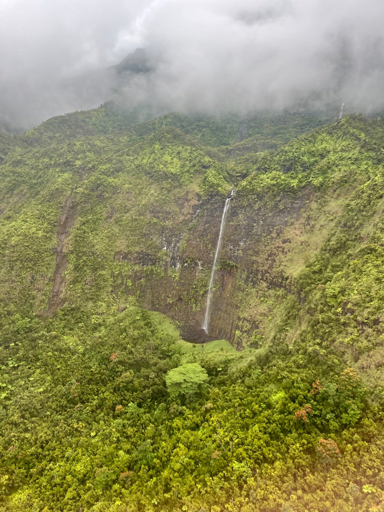Survoler Hawaï en hélicoptère faisait partie de l’un de nos rêves «onéreux». Difficile de trouver plus bel endroit, car le centre de l’île y est tellement préservé et interdit d’accès (propriété privée, aucune route ou simplement relief trop accidenté), qu’il n’est justement possible de l’admirer que par voie aérienne. Même si la météo n’était pas forcément de notre côté pour prendre des photos exceptionnelles, le souvenir restera impérissable. Passer dans le Grand Canyon du Pacifique, admirer la fameuse chute du tournage de Jurassic Parc ou encore s’approcher des pics montagneux verdoyants qui constituent la superbe Napali Coast. Bref, que d’émotions…