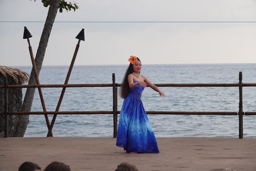 Quand on est à Hawaï, il faut vivre au moins une fois une Luau qui est une fête traditionnelle pour les Hawaïens. On y découvre leur culture, leurs croyances, leurs danses, leurs chants, leur musique, leur cuisine et leur façon de faire la fête. Tout ceci dans un lieu assez idyllique au bord de l’océan et au coucher du soleil. Notre petite artiste a même été invitée sur scène pour une danse typique. Inoubliable pour elle qui avait des étoiles dans les yeux et pour nous également.