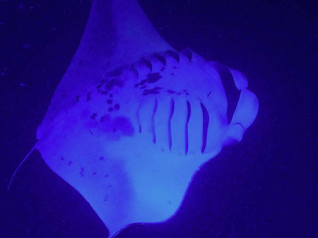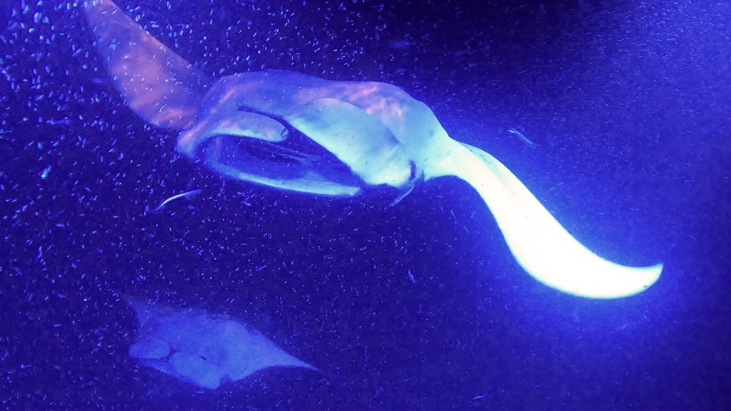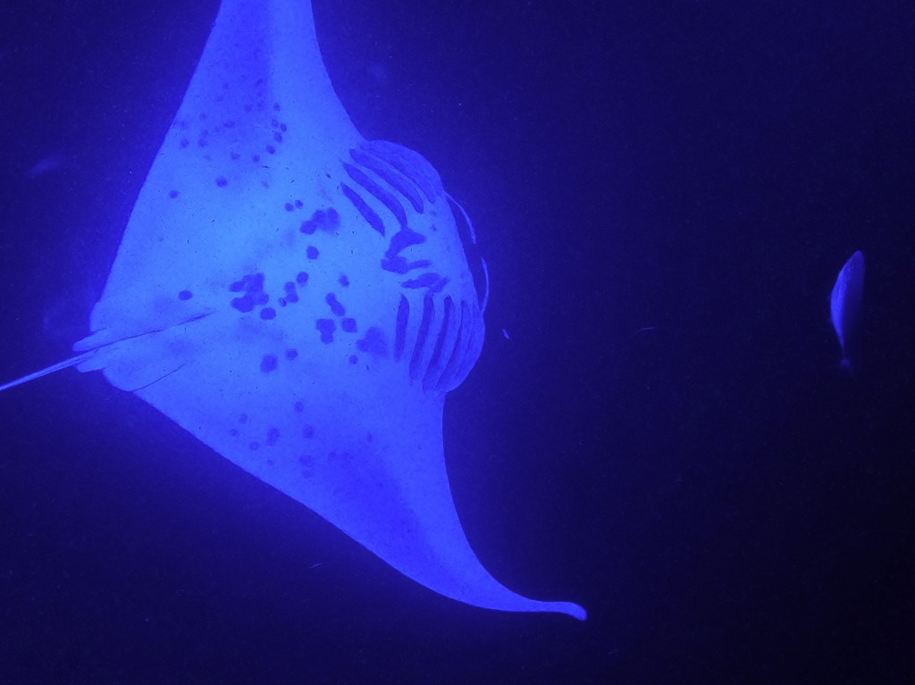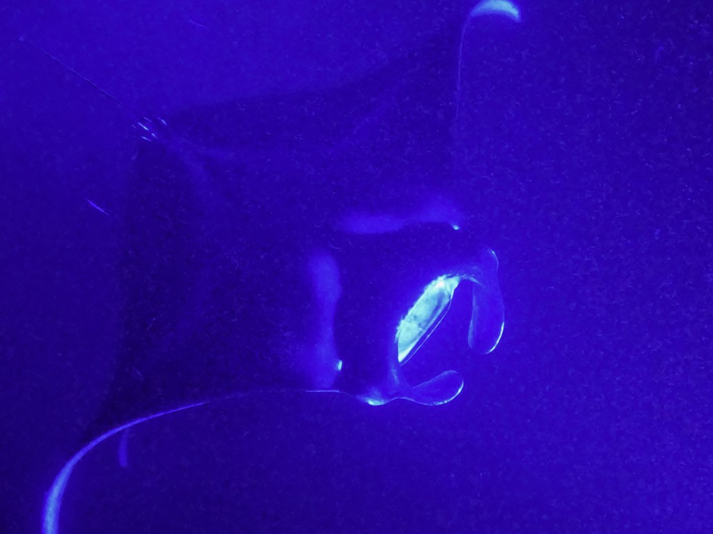 Voici une expérience inoubliable, même pour nous plongeurs qui avions déjà vu des raies mantas à plusieurs reprises. Snorkelling en pleine nuit pour admirer ces créatures majestueuses presque surréelles en train de se nourrir de plancton (ces énormes poissons peuvent se nourrir jusqu’à 22h par jour!). Apparemment, il n’y a que deux endroits au monde pour pouvoir faire de telles observations. Grâce à une lumière projetée dans l’océan, il est possible d’admirer leur danse en ayant le sentiment de la partager avec elles et de manière encore plus folle lorsqu’elles vous frôlent…
