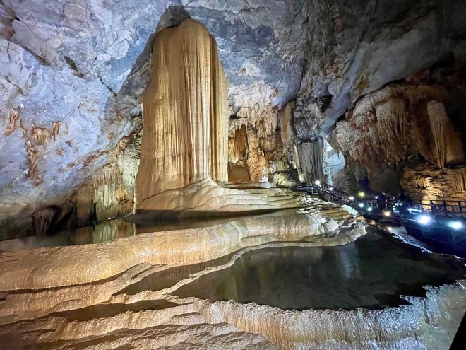 La grotte de Thiên Duòng, dans la région Phong Nahn, est la plus longue grotte du monde (32km). Elle a été découverte en 2006, avec des formations calcaires de plusieurs millions d’années! Impressionnant…