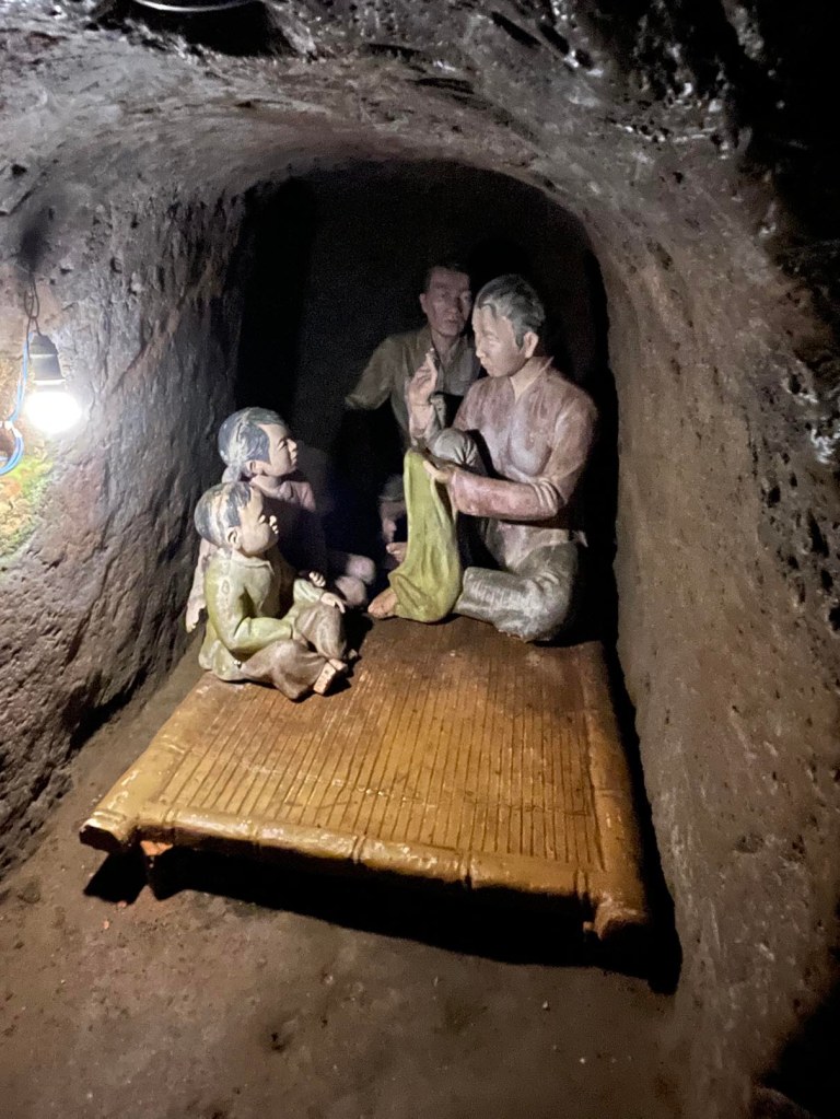 A Vinh Moc, de véritables villages ont été creusés et certains à 32 mètres sous la terre! Le système peut s’apparenter à une fourmilière avec des puits d’air à la surface. A Vinh Linh il y avait jusqu’à 600 personnes. 64 enfants y sont nés. Il y avait 3 étages: