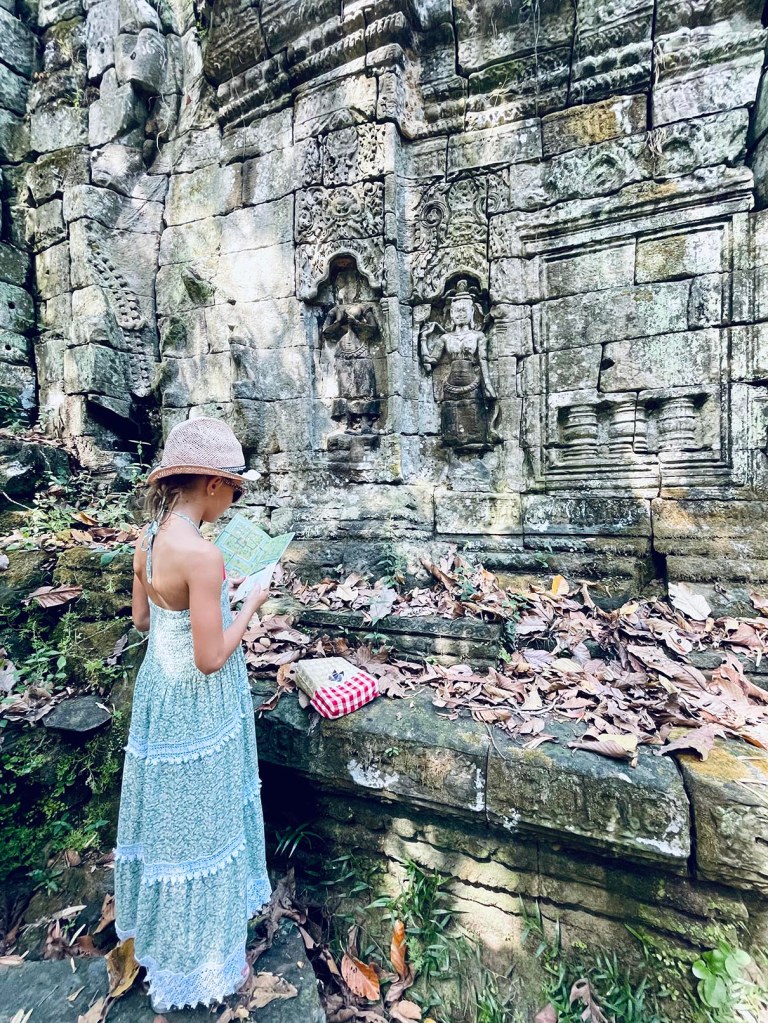 Comment rendre ludique (en plus de magnifique), la visite de ces majestueux et vastes temples? En faisant la chasse au trésor d’Hanouman. Amusement garanti pour petits et grands! Nous voici donc partis en deux équipe adverses (homme contre femmes) munis de notre carnet, d’un crayon, d’un sac, de notre première boîte à indice et de notre tuk-tuk pour la journée, afin de naviguer entre les différents sites. L’idée est de retrouver, grâce aux énigmes, des boîtes dissimulées dans les sites principaux, tout en passant hors des sentiers battus habituels. Le tout accompagnés d’un guide pour nous fournir les explications indispensables sur les lieux. Au final, un mot secret est découvert, ainsi qu’une combinaison de chiffres permettant d’ouvrir le cadenas de la boîte au trésor. Qui sera la première équipe à trouver le précieux trésor? C’est parti 👍🏻