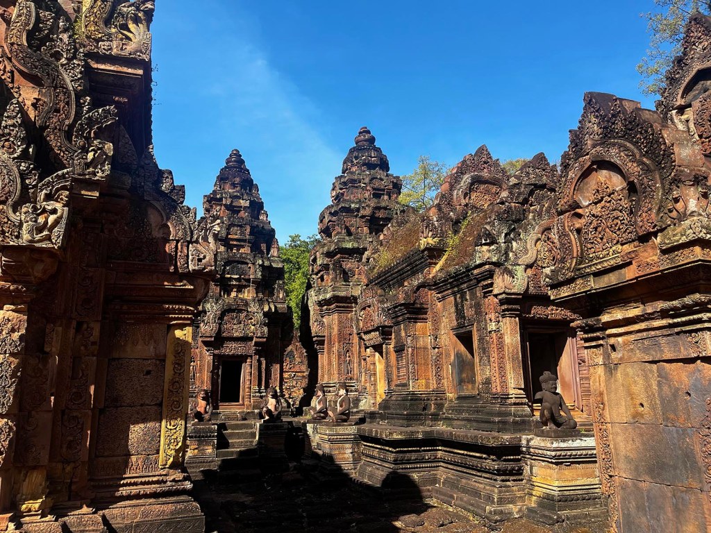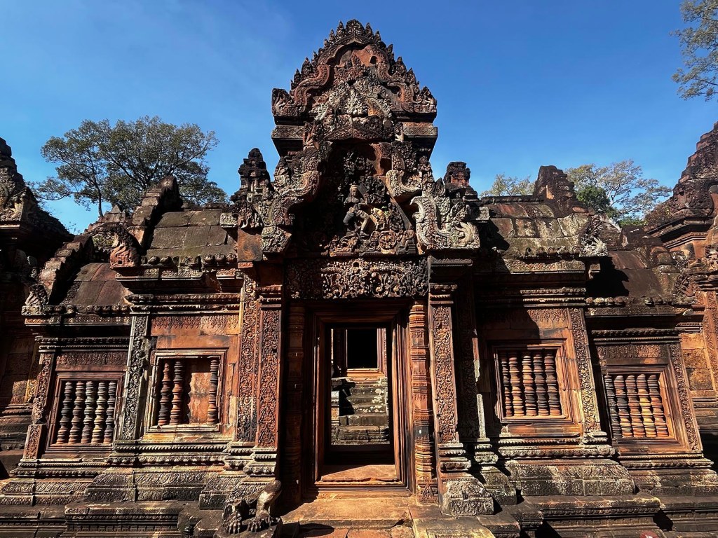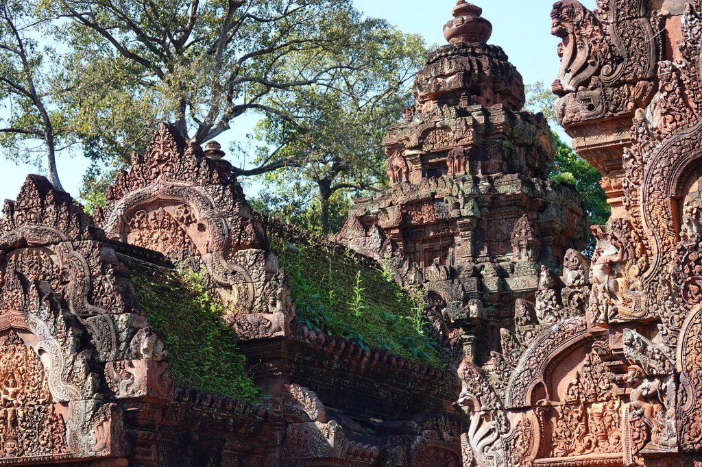 C’était un temple dédié à Shiva. C’est un bijou de l’art khmer dû au travail de décoration des pierres. Il est construit en briques, en laterite et en grès. Il est souvent appelé temple rose mais la couleur est plutôt orange/ocre.