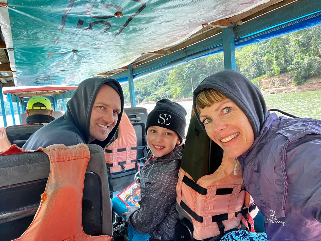 Petit arrêt sur les rives pour un pique-nique/barbecue que nous partagerons, en partie, avec certains villageois très pauvres qui n’ont ni électricité, ni eau courante. Ici, on est vraiment très loin de tout type de confort et encore une fois, nous mesurons la chance que nous avons avec un gros pincement au cœur.