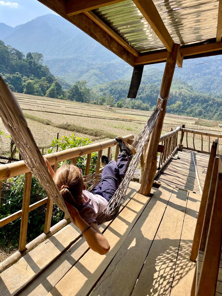 Aujourd’hui, étape de Nong Khiaw à Muang Hiem. Il nous fait 7 heures de route-piste bien cabossée, pour faire 180 km! C’est dire l’état de la route. On est arrivés morts 😮💨 Elle est très très peu fréquentée par les touristes et parsemée de petits villages Khamu très pauvres. Il y a un nombre énorme de petits enfants et on se rend bien compte que dans les trois pays d’Indochine que nous avons visités, l’accès à des moyens de contraception est quasi inexistant dans les zones rurales…