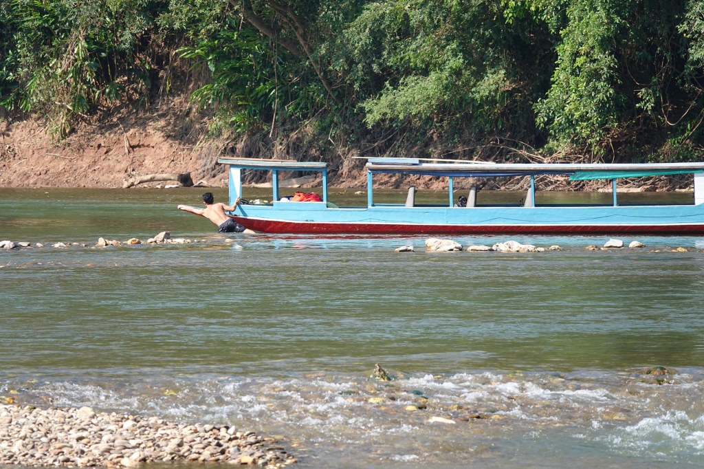 Notre étape de Muang Khua à Muang Ngoi: aucune route pour y accéder, le seul moyen est d’y aller par bateau (plus de 3 heures) via la rivière Nam Ou. En plus, il faut traverser un barrage et changer de bateau!