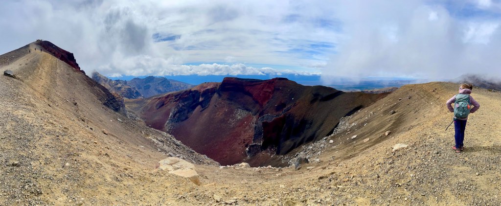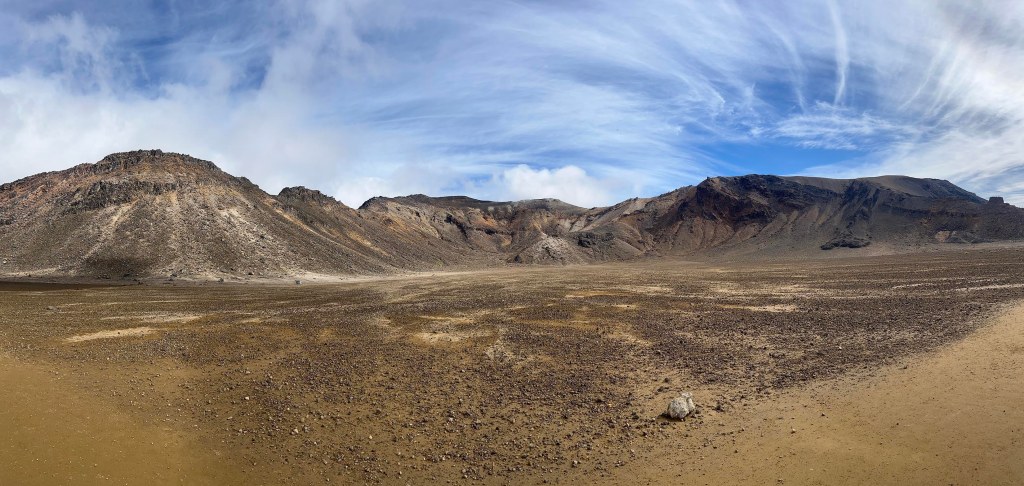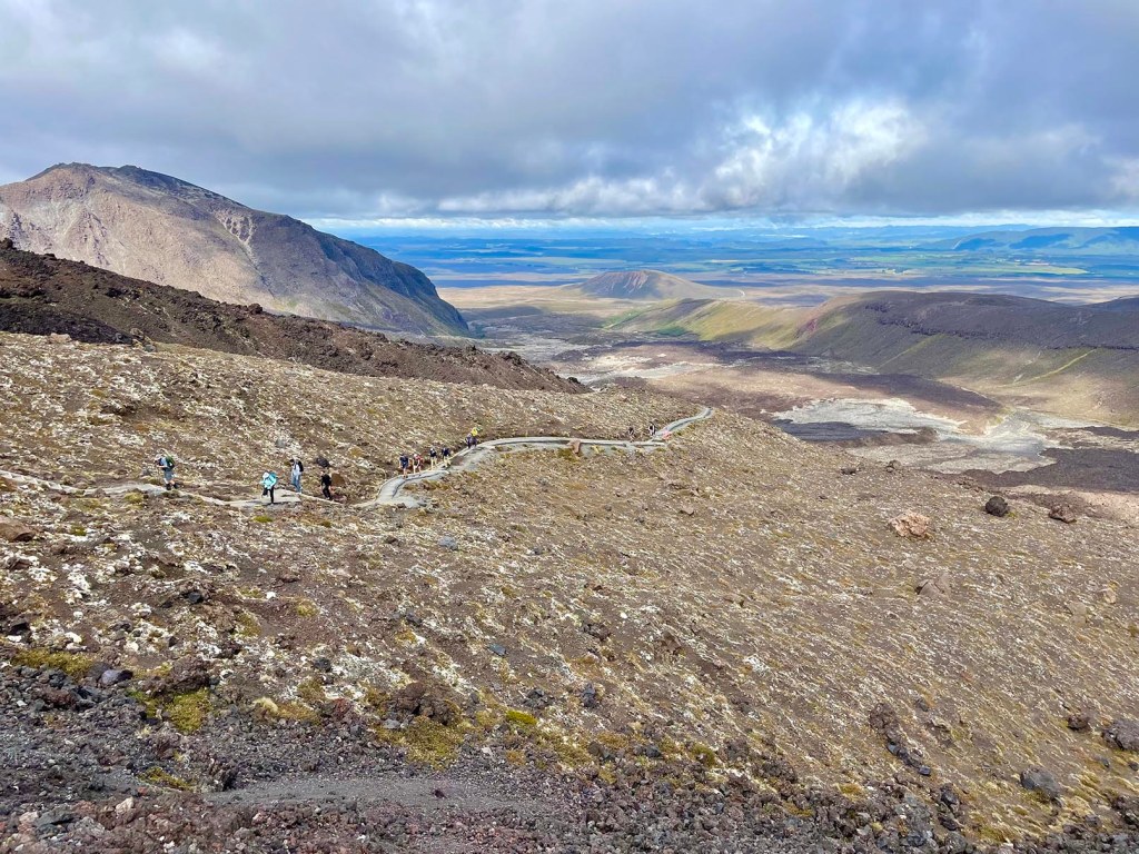 Notre magnifique randonnée du jour: le Tongariro Alpine Crossing, très fréquentée (chaque année par des milliers de personnes) mais reste un endroit sauvage et un hors du temps où nous avons d’ailleurs eu toutes les météos et températures imaginables.