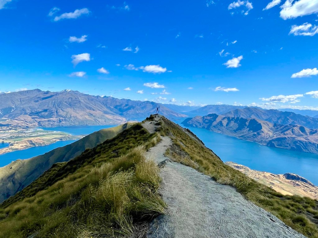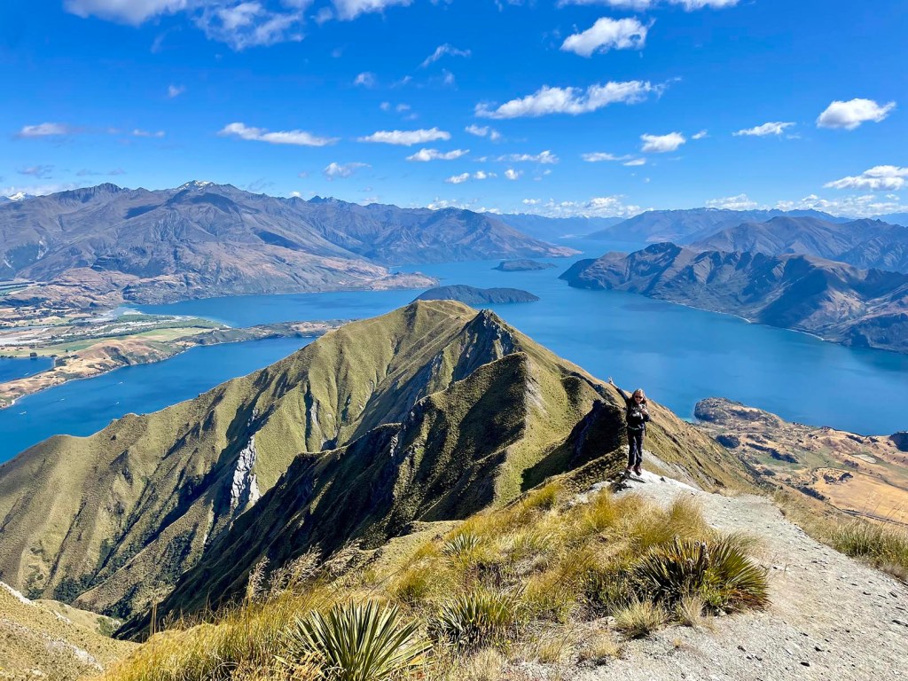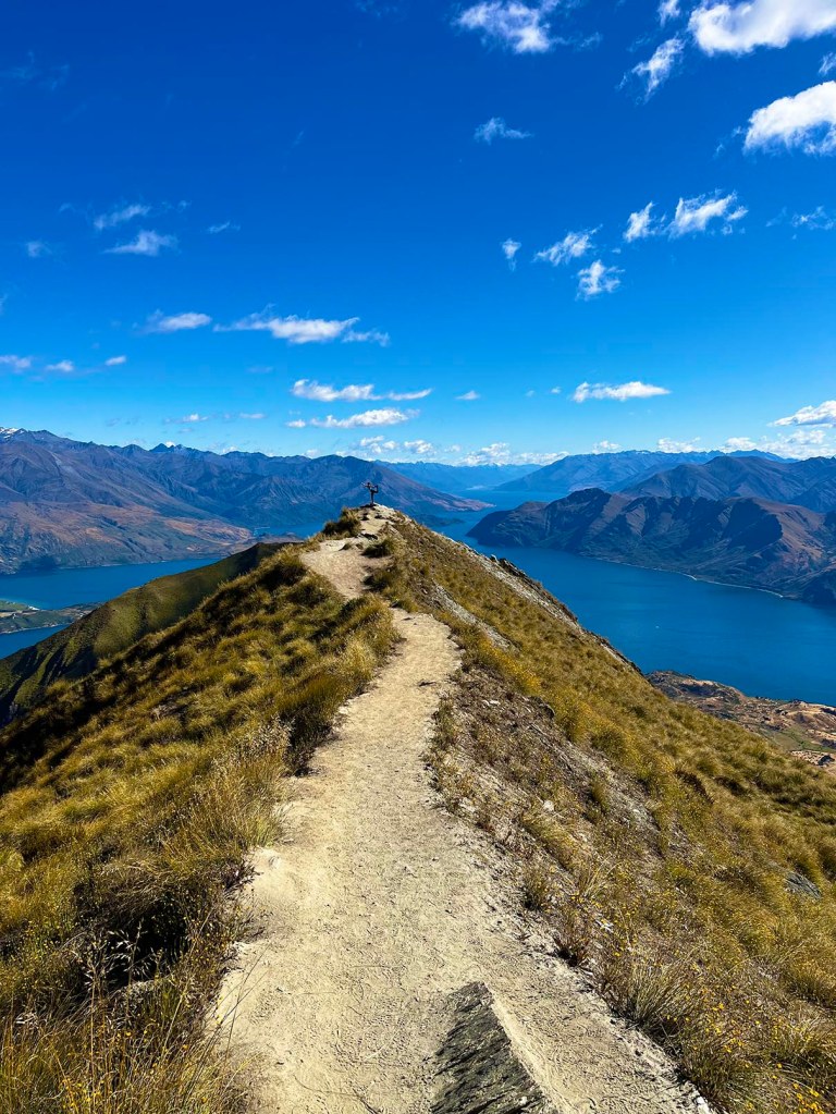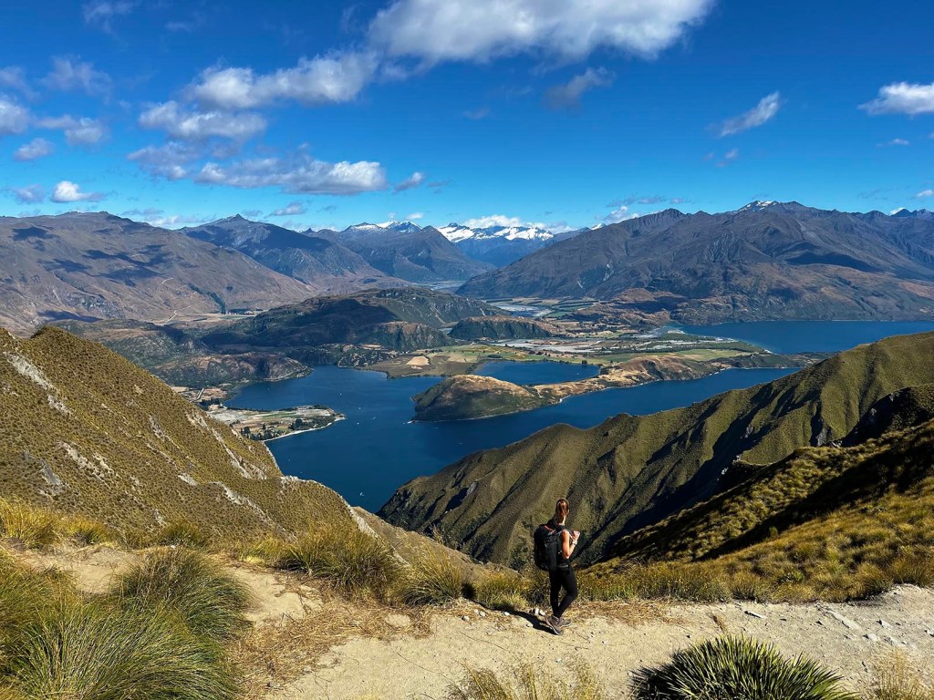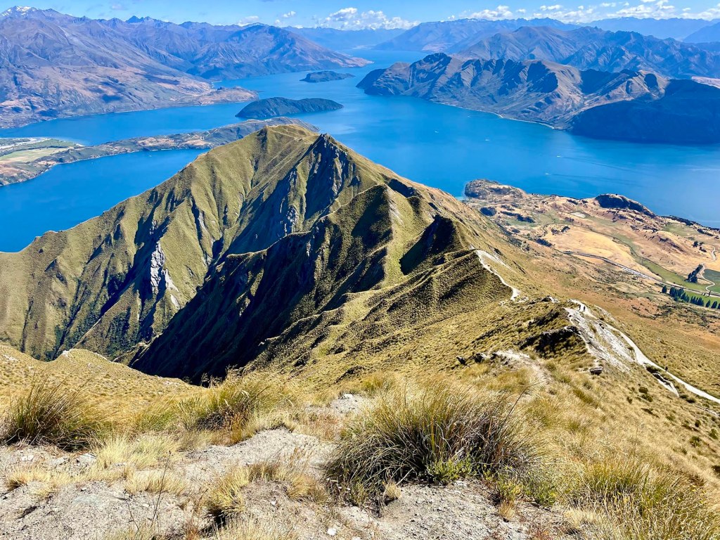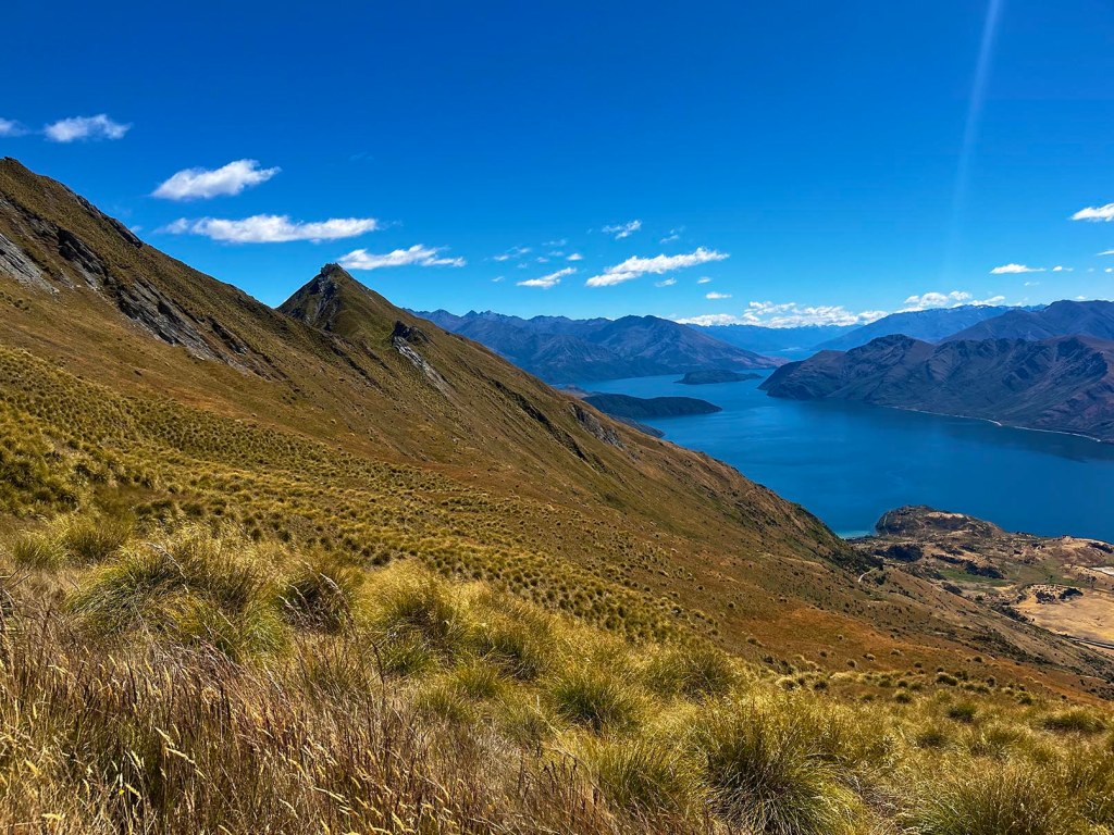 Malgré la distance et le dénivelé, l’ascension du Roys Peak est relativement aisée car le terrain est facile: sentier large, pente douce, etc. Tout au long de la montée, nous admirons de superbes points de vue sur le lac Wanaka!