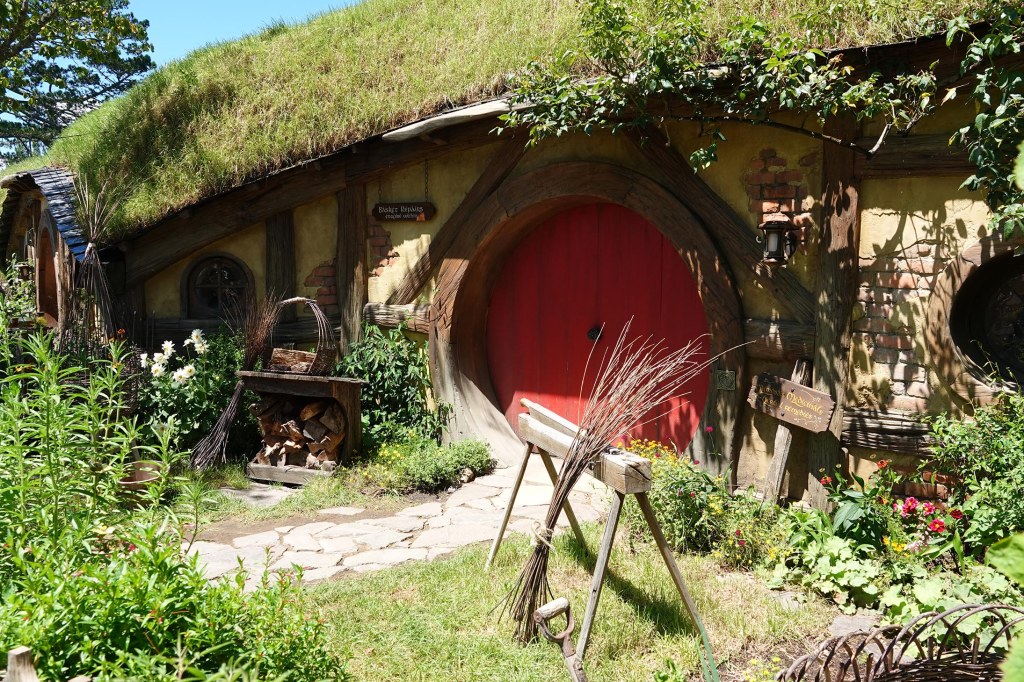 Pour être totalement fidèle aux descriptions des livres, le metteur en scène Peter Jackson, a été intransigeant et exigeant. Il a par exemple fait construire un faux chêne (qui a plus de 200’000 fausses feuilles 😳) au-dessus de la maison la plus connue. Aujourd’hui, 44 Hobbit Holes (maisons) sont présents sur ce site qui nous fait plonger au cœur de l’univers de JRR Tolkien.
