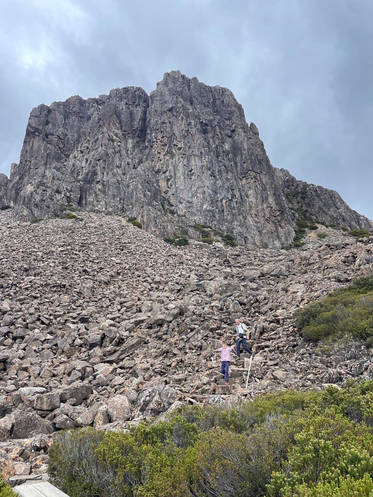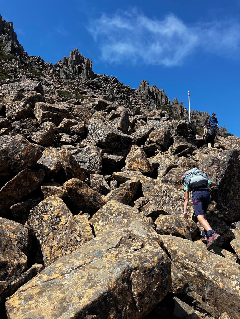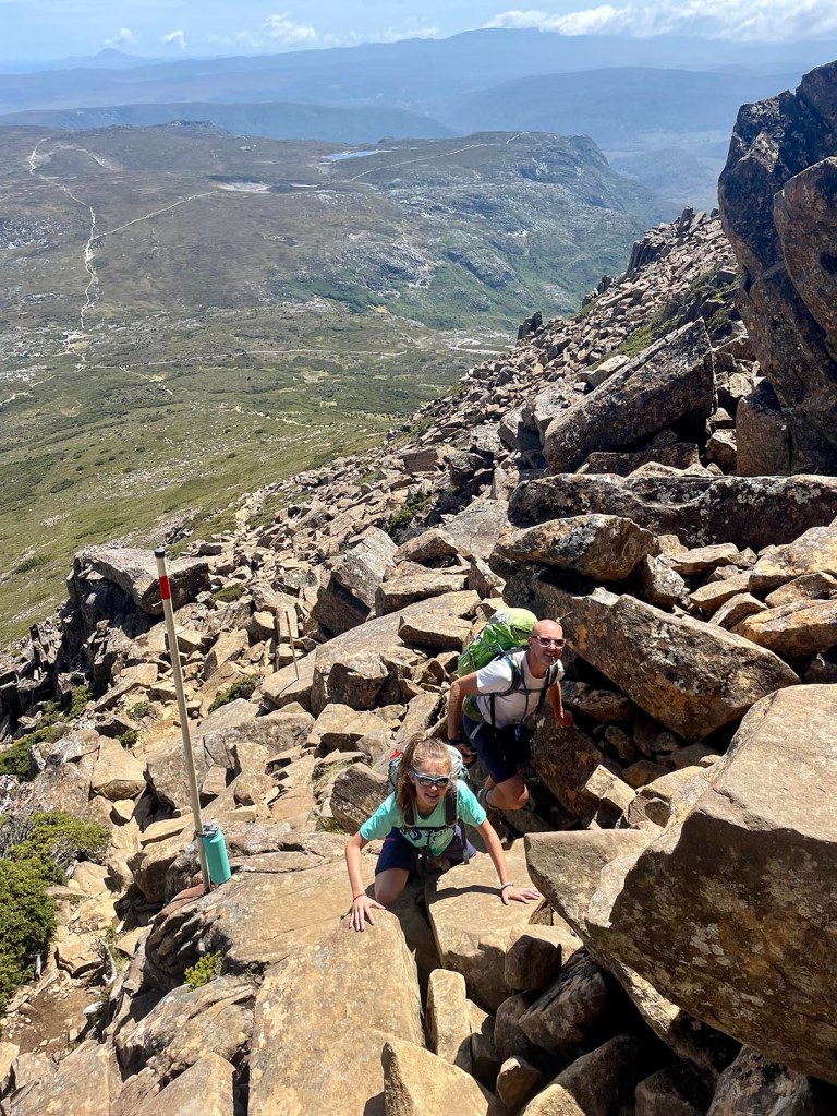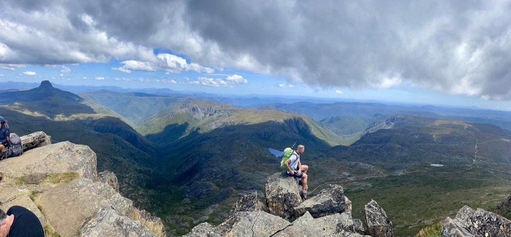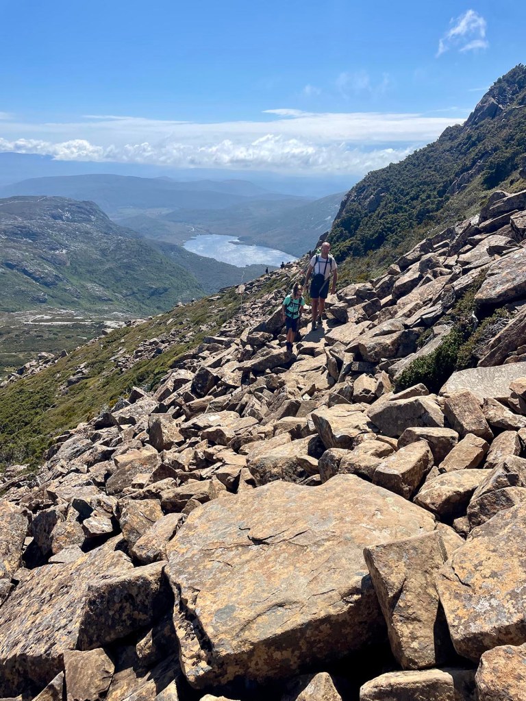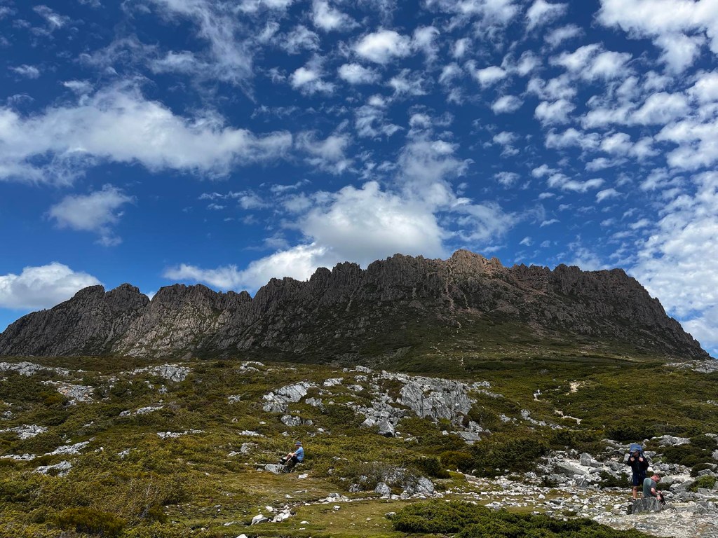 Pour notre deuxième jour dans cette contrée sauvage, notre rando qui fut bien exigeante, demandant beaucoup de concentration et en grande partie s’apparentant à de l’escalade (en tout cas pour l’ascension du sommet de Cradle Mountain). Mais l’effort a été récompensé par un paysage superbe!