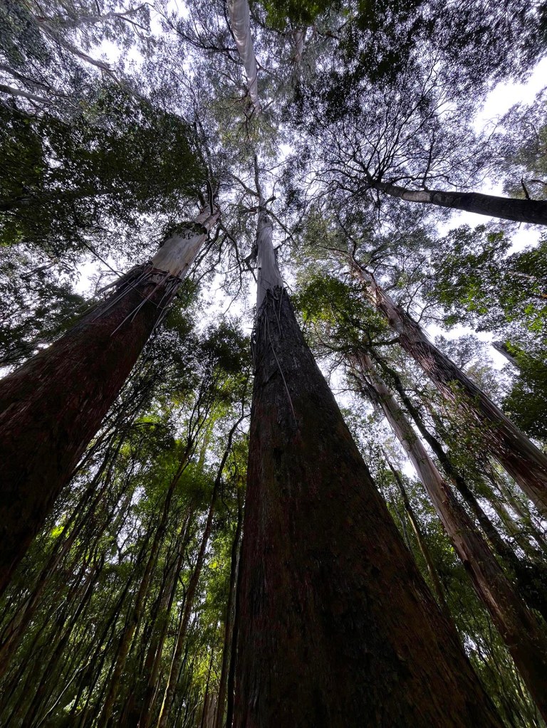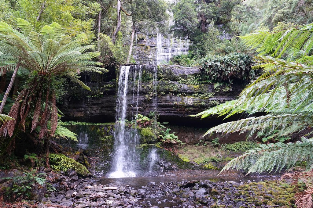 Petite marche sympathique au milieu des arbres géants jusqu’aux Russels Falls et Horseshoe Falls, dans le Mount Field National Park.