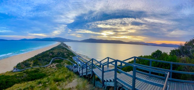 Nous y avons rencontré un nombre énorme de kangourous et malheureusement également passablement écrasés au bord de la route. Cette île a la caractéristique d’être séparée en deux parties par un isthme très étroit (The Neck) où il y a un point de vue magnifique! On y trouve également des fruits de mers, des huîtres, d’excellents fromages locaux accompagnés de bières artisanales qu’on ne s’est évidemment pas privés de déguster!