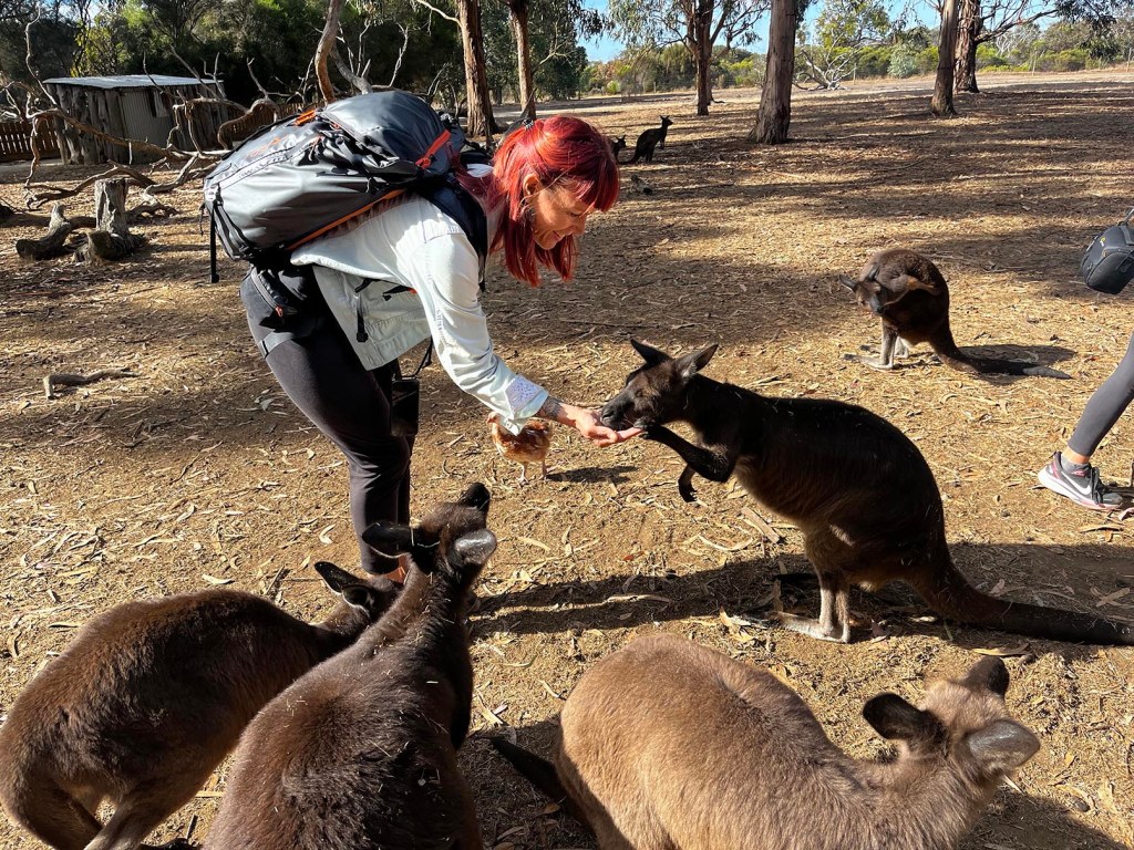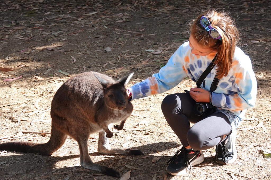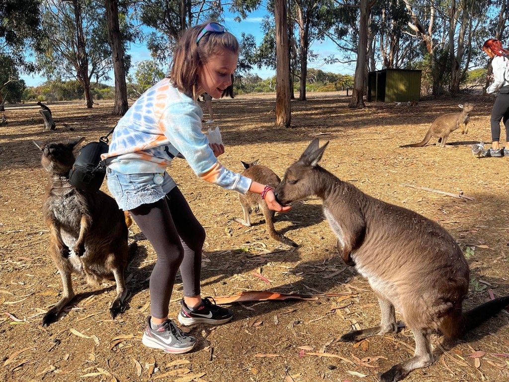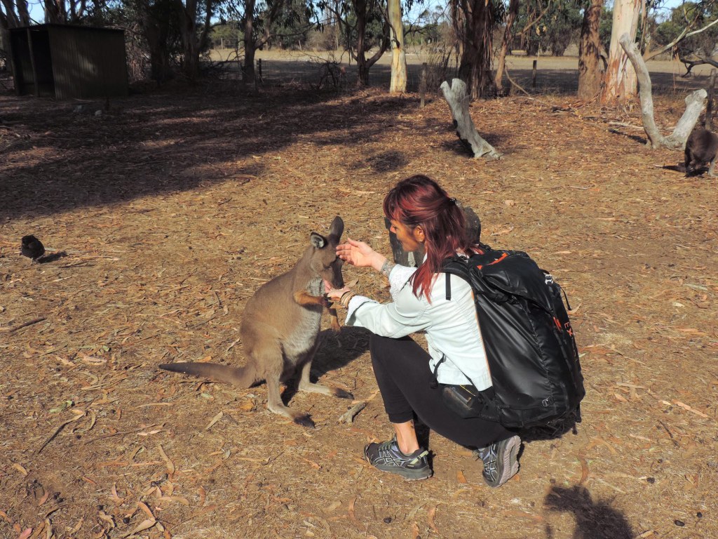 Nous avons pu approcher et même porter ces adorables marsupiaux au Kangourou Island Wildlife Park. Ce mini-zoo recueille beaucoup d’animaux orphelins, blessés ou en danger. Le prix du billet d’entrée contribue à soutenir ce programme. Quels moments magiques partagés avec ces grosses peluches mais également avec les kangourous et les wallabies à qui nous avons pu donner à manger.