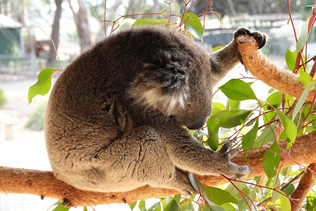 Cet animal, véritable emblème australien, n’était plus présent en Australie-Méridionale, mais il y a été réintroduit. Le koala est étroitement lié à l’eucalyptus ou gommier, dont il ne mange que les feuilles d’une vingtaine d’espèces. Et il y a bien plus de 700 variétés d’eucalyptus! Il en mange environ un kilo par jour. Si les koalas dorment la plupart de la journée, c’est justement parce que l’eucalyptus est très très long et difficile à digérer.