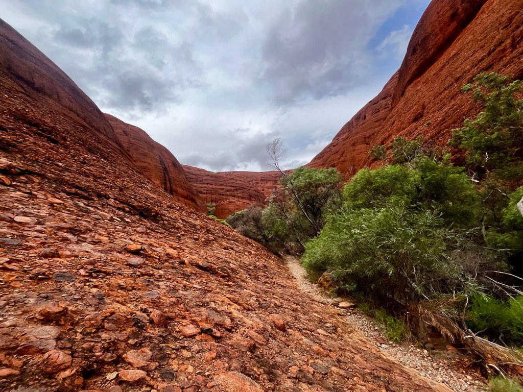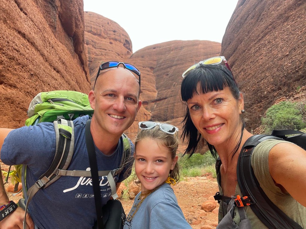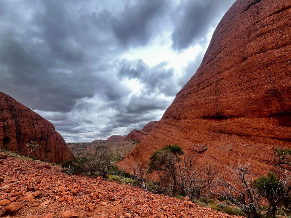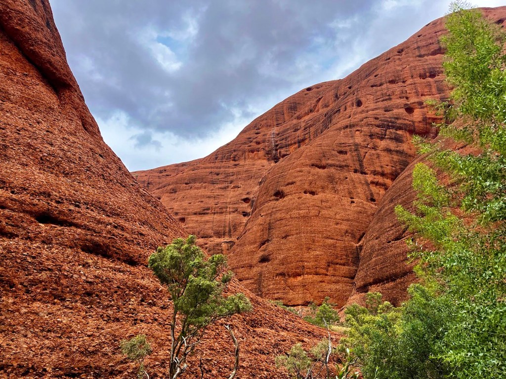 De notre point de vue, ce site encore plus beau que le précédent. Ce qui est magique, c’est qu’une randonnée permet de passer à travers les parois rocheuses et de se sentir vraiment tout petit au milieu de ces canyons. Petits, mais pas seuls, car des centaines de mouches accompagnent chacun des visiteurs 😅. Il est d’ailleurs très courant, ici au centre de l’Australie, de rencontrer des gens avec une moustiquaire sur la tête et tout le monde applique «le grand salut australien» (on chasse les mouches en agitant les bras devant nos têtes).