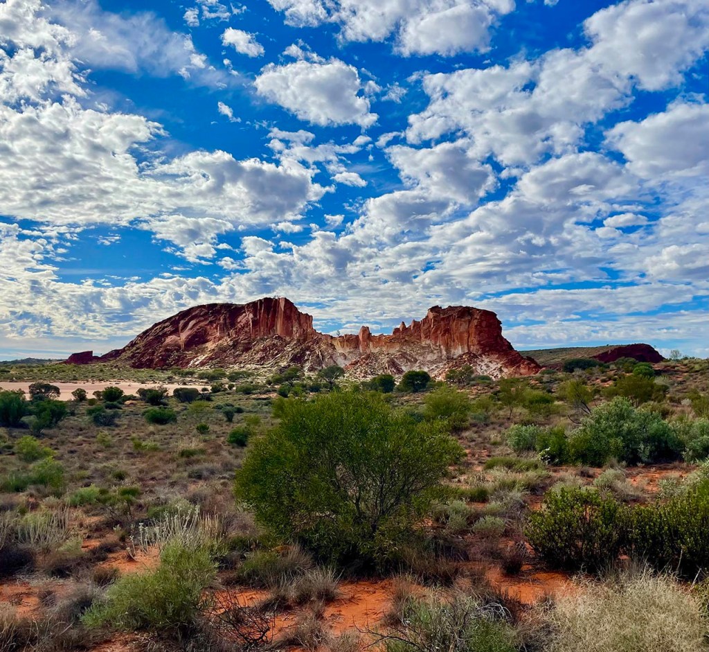 Situé à environ 100 km d’Alice Spring, le magnifique site de Rainbow Valley est célèbre pour ses falaises de grès multicolores. La tempête étant enfin passée, nous apprécions particulièrement cette nature calme et sauvage, d’autant plus que nous sommes absolument seuls pour camper ici et admirer un lever de soleil à couper le souffle.