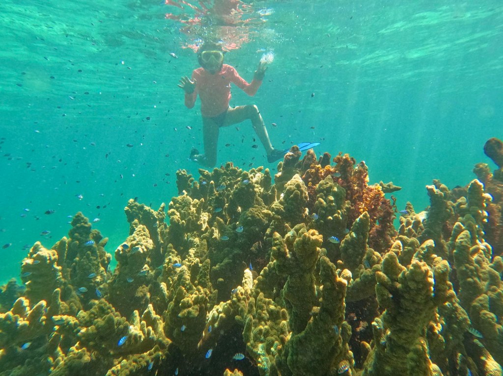 Le récif de Ningaloo est long de 260 km. Bien que moins connu et moins couru que la Grande Barrière de Corail sur la côte est, il n’en est pas moins fantastique. Les coraux sont extrêmement bien conservés et la vie marine y est foisonnante. Pour ne pas gâcher le plaisir, il s’agit d’un récif frangeant; c’est-à-dire qu’il est directement relié à la côte et accessible facilement depuis la plage, pour notre plus grand plaisir. Cela constitue un énorme avantage par rapport à son « grand frère » de l’autre côté du pays!