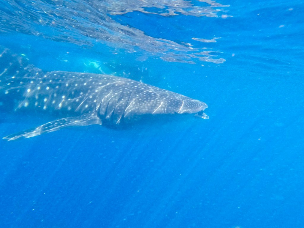 Voici un autre rêve réalisé: nager avec des requins-baleines, soit le plus grand poisson au monde! En effet, ces derniers sont bel et bien des requins mais totalement inoffensifs vu qu’il ne mangent que du plancton. Pouvant atteindre 18 à 20 mètres, la plupart d’entre eux font entre 12 et 15 mètres. Ils dégagent une sérénité incroyable et c’est tellement privilégié de pouvoir nager plusieurs fois avec eux en eau libre. Nous avons même eu la chance inouïe d’en voir deux se croiser 🍀