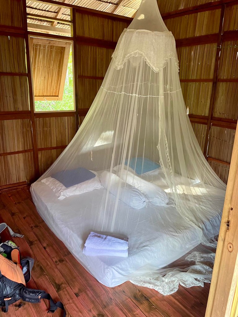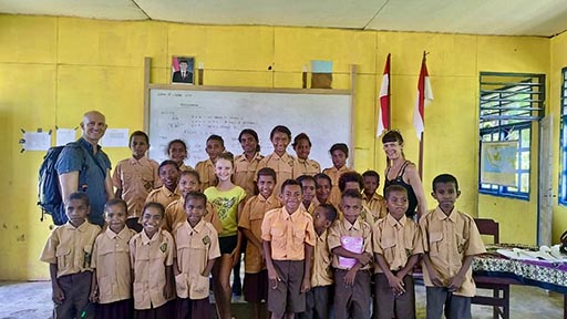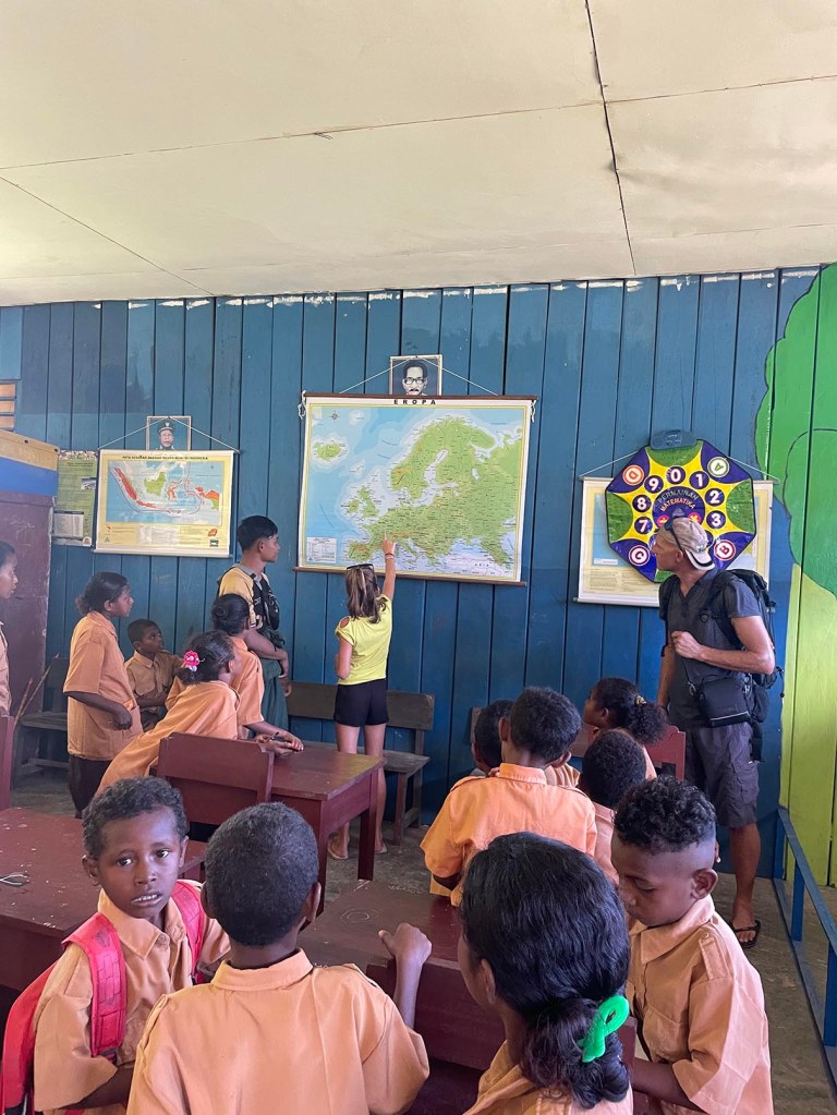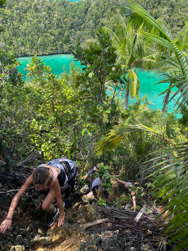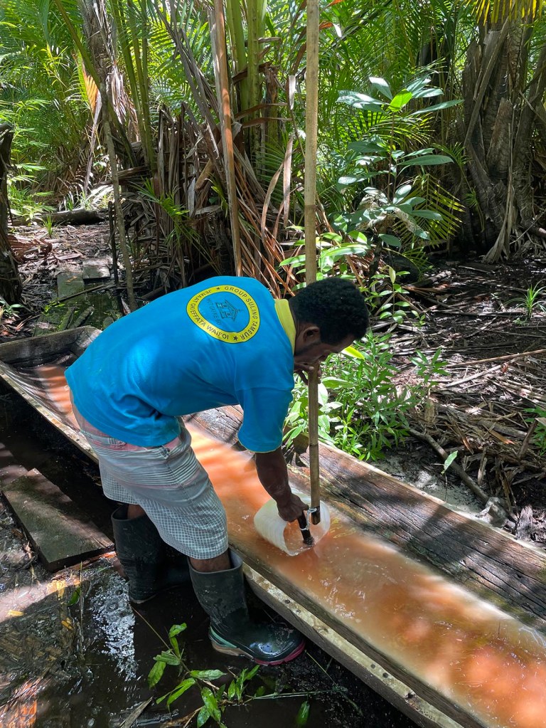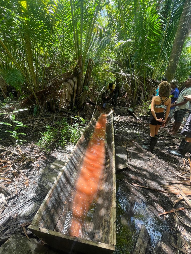 Nous avons vécu de magnifiques expériences dont la préparation du sagou, le plat local papou qui remplace le riz. Un arbre (le sagou) est creusé, puis le cœur en est extrait et broyé. Cet amas est ensuite mis dans une presse artisanale avec de l’eau pour extraire le jus qui ressemble à du lait de coco mais qui n’est pas forcément bon à boire. Une sorte de farine est récupérée, puis séchée pour être utilisée pour la préparation de plats typiques. Quel sacré processus!