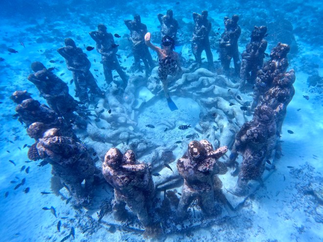 La pièce a été créée par Jason deCaires Taylor, un sculpteur sous-marin bien connu. Ses sculptures se trouvent dans des endroits comme les Caraïbes, les îles Canaries et même dans la Tamise dans son pays d’origine de la Grande-Bretagne.