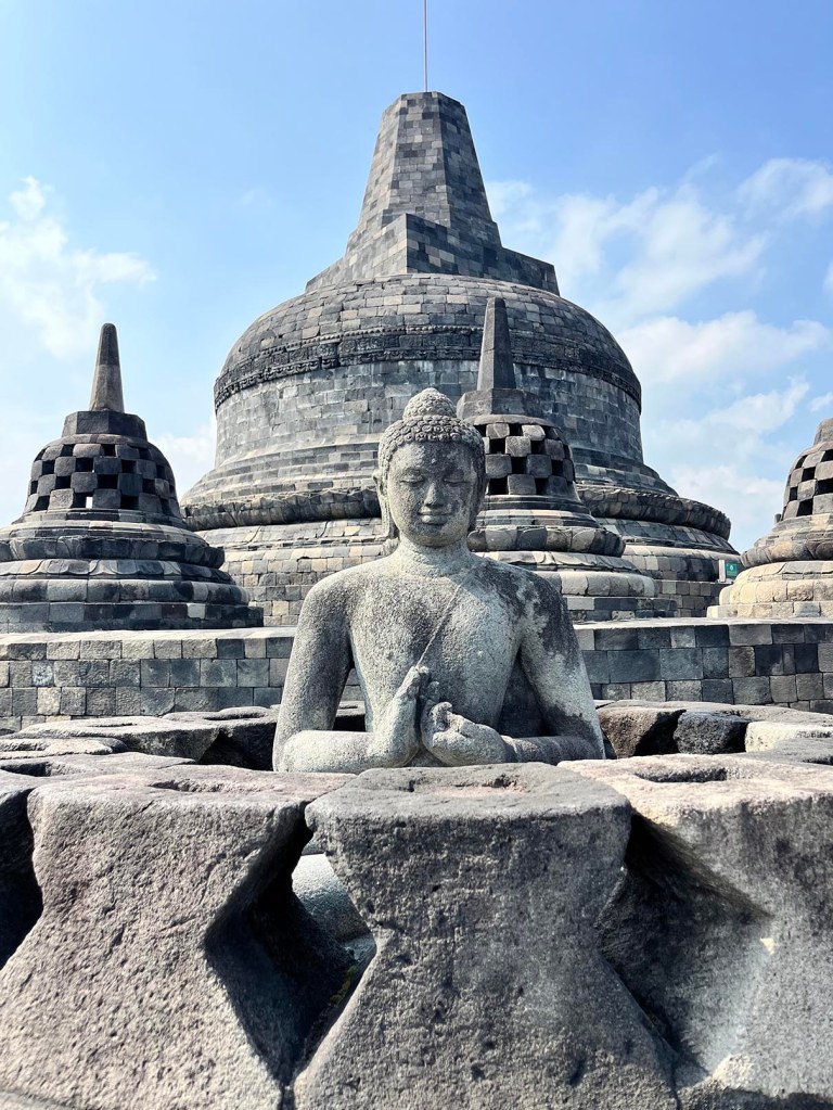 Borobudur signifie temple sur la colline. Il est le plus grand temple bouddhiste du monde. Construit autour du 9e siècle, le site fut ensuite abandonné, puis recouvert par les cendres et la végétation avant d’être redécouvert par un gouverneur britannique, dix siècles plus tard!