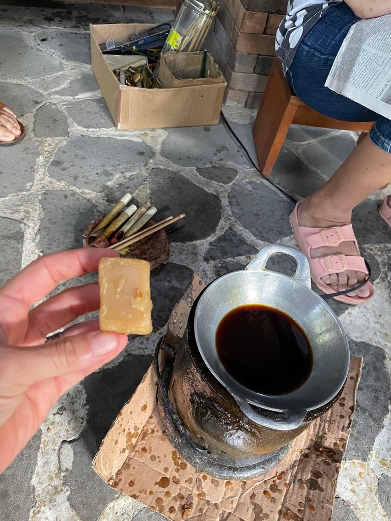 - Ensuite le tissu est passé brièvement dans de l’eau bouillante afin de dissoudre la cire froide