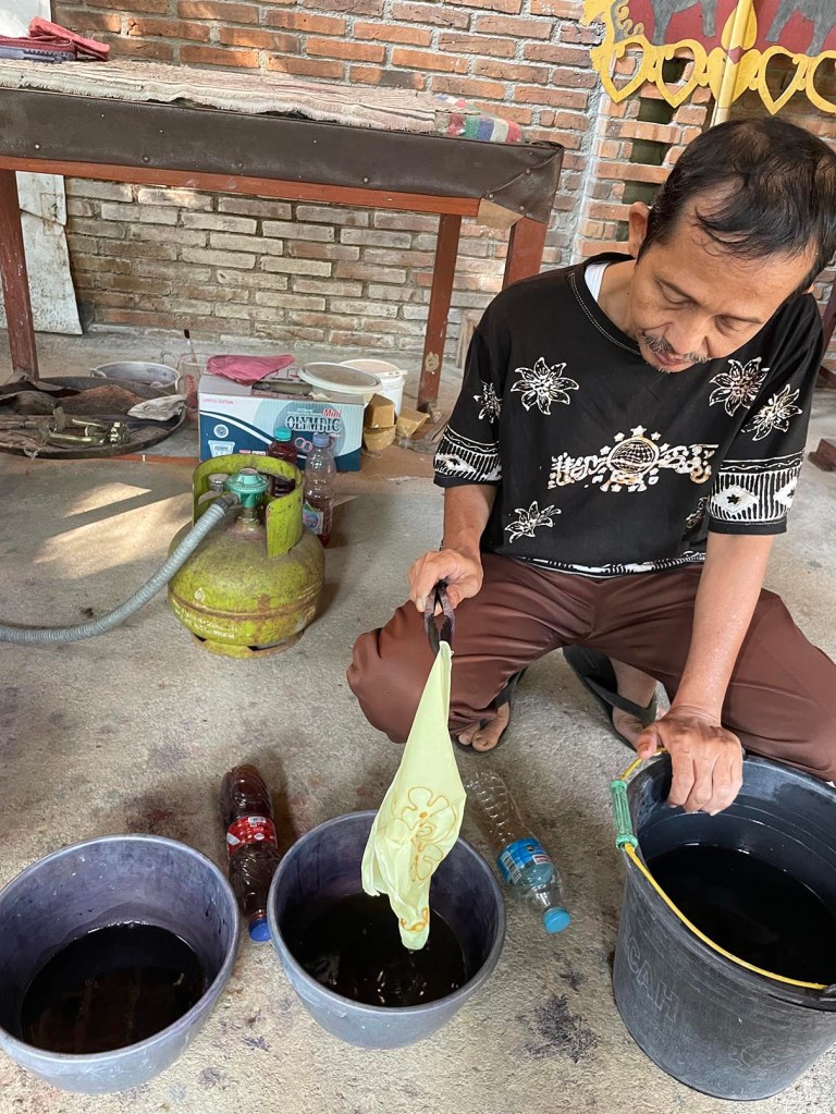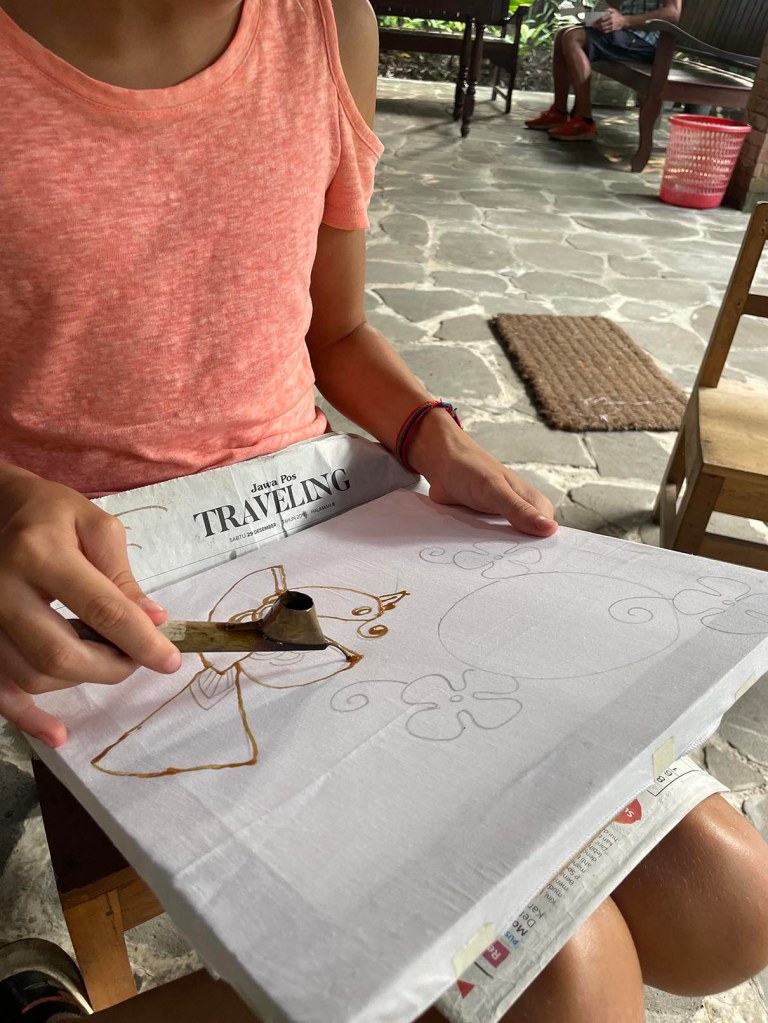 Le batik (mot javanais) est une technique indonésienne de teinture résistante à la cire appliquée sur l’ensemble du tissu. Cette technique est originaire de l’île de Java. Le batik est fabriqué soit en dessinant des points et des lignes de cire avec un outil à bec appelé « canting », soit en imprimant la cire avec un tampon en cuivre appelé capuchon. La cire appliquée résiste aux colorants et permet donc à l’artisan de colorer de manière sélective en trempant le tissu dans une couleur, en retirant la cire avec de l’eau bouillante et en répétant si plusieurs couleurs sont souhaitées.