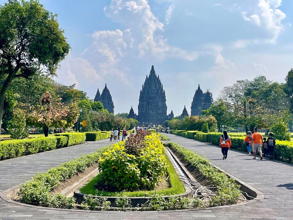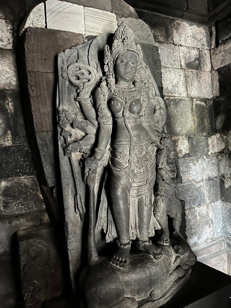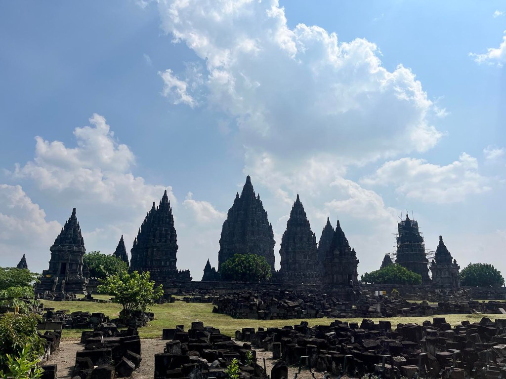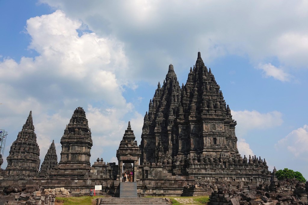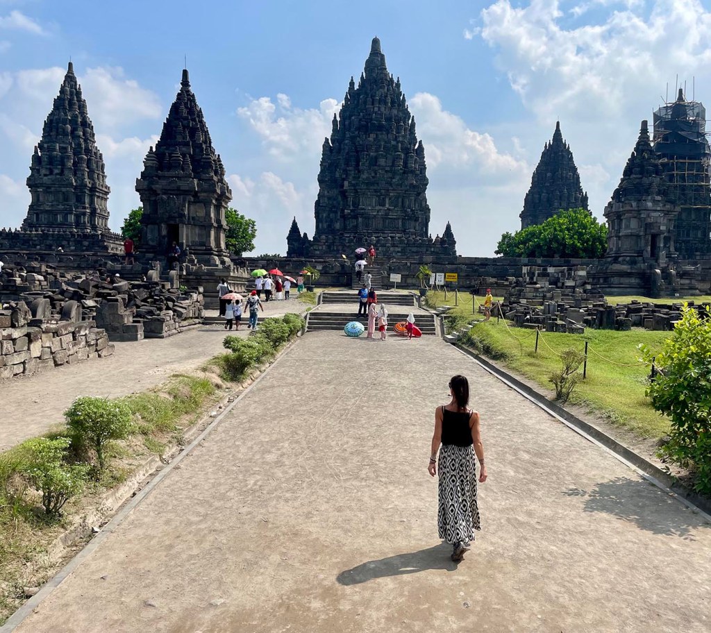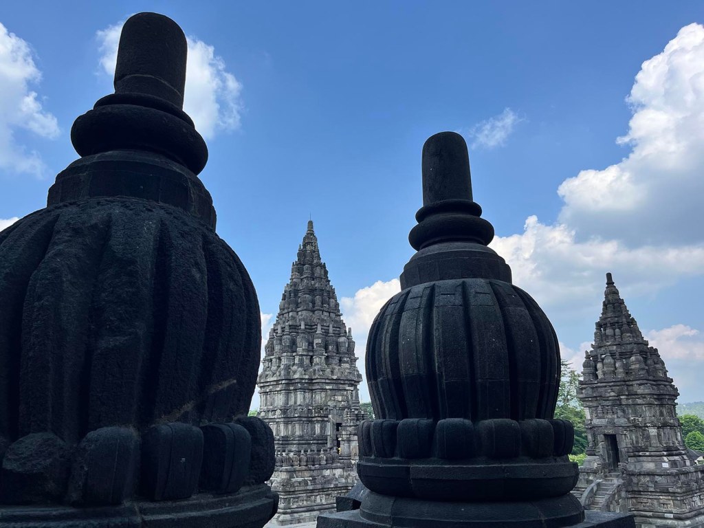 Prambanan signifie temple utilisé pour la méditation. Il est le plus grand site hindou d’Indonésie et il est également classé au Patrimoine mondial de l’Unesco. Construit entre le 8e et le 10e siècle, il est le témoin de la période hindoue sur l’île de Java. A cette époque, le nord était gouverné par les hindous et le sud par les bouddhistes. Il est constitué de plus de 240 bâtiments. Les trois principaux sont dédiés au trimurti, la triple manifestation de l’Etre suprême représenté par les dieux Brahma (constructeur), Vishnou (protecteur) et Shiva (destructeur). Le plus grand temple est celui de Shiva.