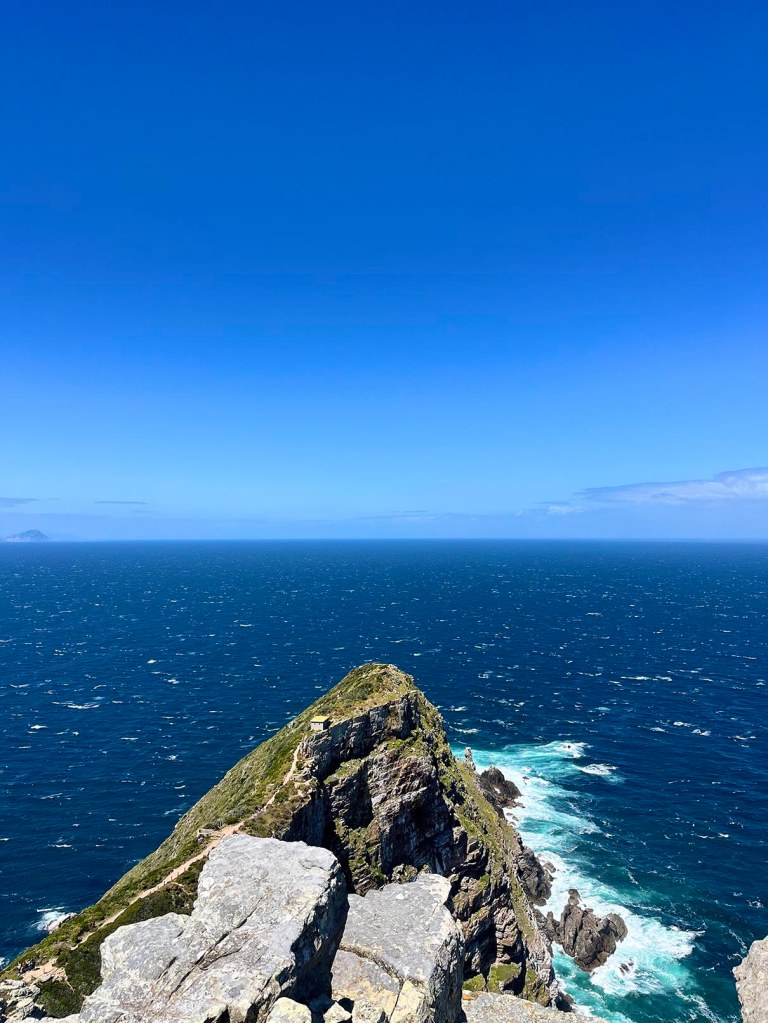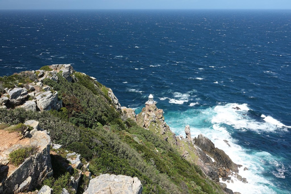 Table Mountain est un énorme massif qui surplombe la ville du Cap. Elle fait partie des Sept nouvelles merveilles de la nature, suite à une élection en 2007. On peut en atteindre le sommet (1086 m) par un téléphérique ou, comme nous, par des sentiers de randonnée. La montée (et la descente aussi!) se fait sur une distance assez courte et il y a de hautes marches à gravir. C’est donc une randonnée relativement physique!