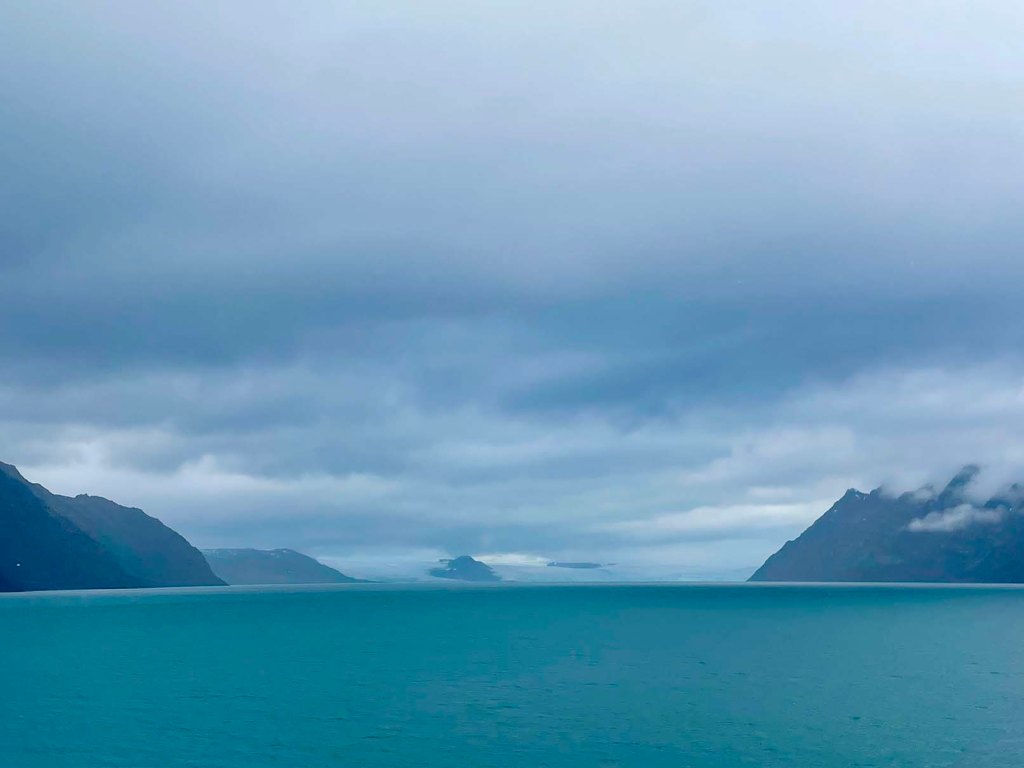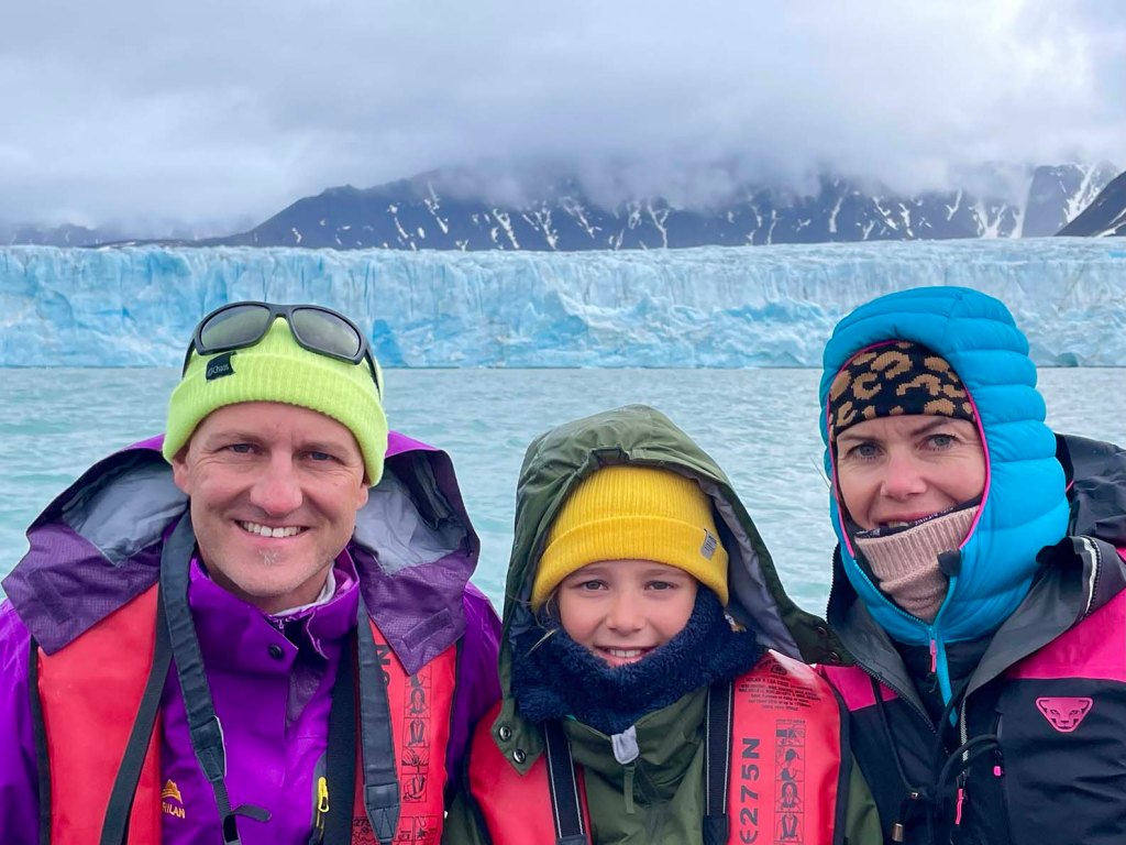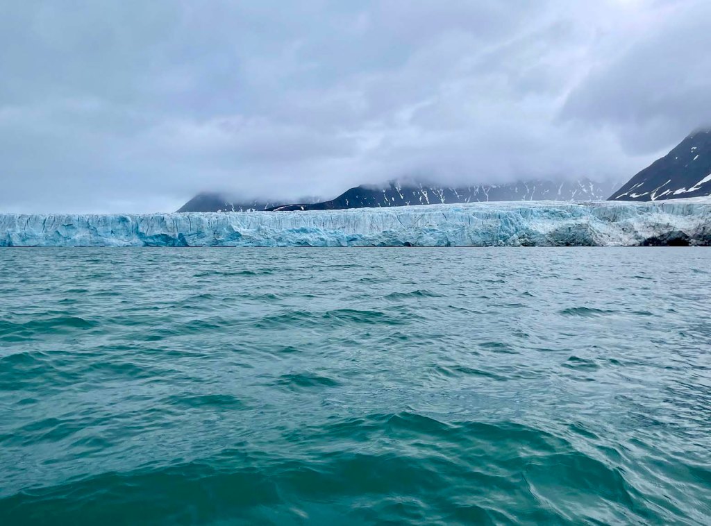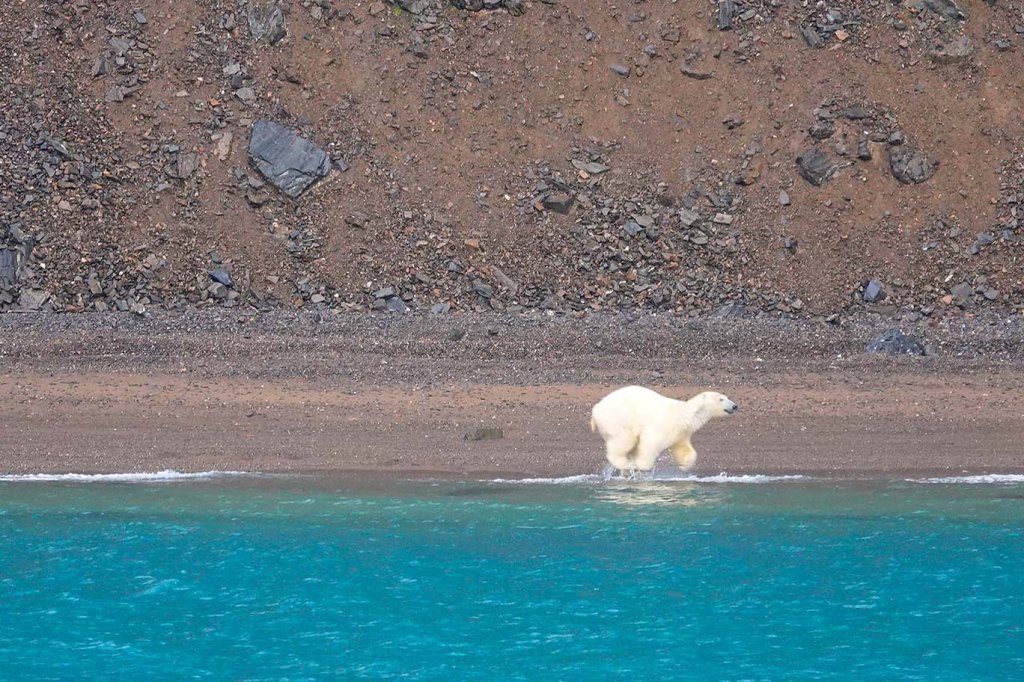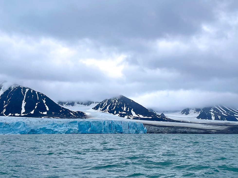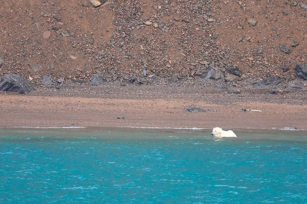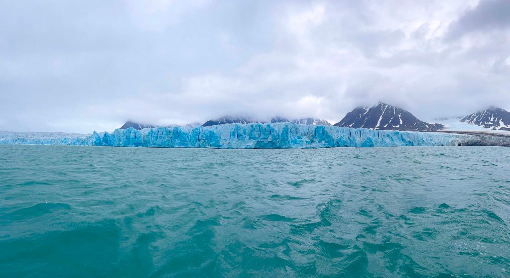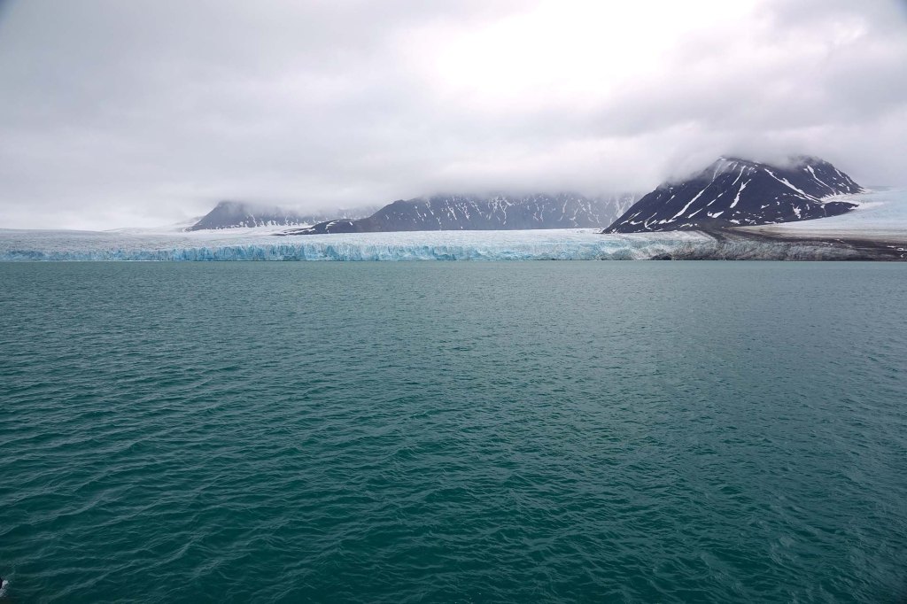 Alors que Zaza et Yann étaient en train de transpirer à la salle de sport et que Lola était encore dans les bras de Morphée, une annonce alerta tout le bateau à 7h15 du matin: un ours était visible sur le rivage! Tous les passagers arrivèrent sur le pont dans des tenues les plus diverses, pyjama, peignoir ou autre! Mais ce réveil en urgence en valait largement la peine. En effet, l’ours était très visible et sa silhouette blanche se détachait parfaitement sur le sable foncé de la plage. Nous avons pu l’observer pendant plus d’une demi-heure et nous l’avons vu nager, manger un poisson, courir. C’était magique! Une fois ses émotions passées, nous avons fait une nouvelle sortie en zodiac au glacier de Lilliehöök, 8 km de large pour 22 km de long. Malheureusement, ce glacier paie un lourd tribu au réchauffement climatique car il recule de 50 m par année. La deuxième expédition du jour nous a amené à Signehamna, lieu d’une ancienne station météo allemande secrète de la Seconde Guerre mondiale.