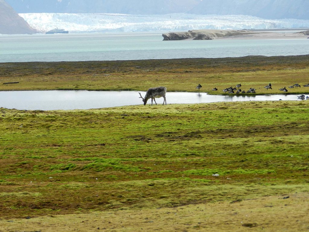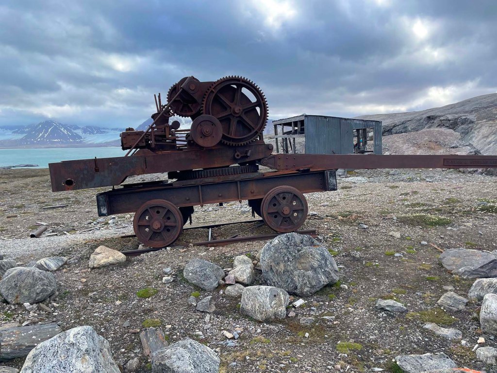 Ce matin, 12 juillet, nous arrivons dans le village le plus septentrional du monde: Ny-Alesund. C’est l’occasion pour tous de poser le pied à terre et pour Yann de faire un jogging sur la terre ferme. C’est bien plus intéressant que sur un pont de navire ou un tapis de course! Mais attention, on ne sort pas des limites du village car l’ours peut rôder à tout moment dans les parages… Le village est habité à l’année par des scientifiques venant de nombreux pays et on y trouve un petit magasin, ainsi que le bureau de poste le plus au nord du monde! Nous avons pu observer des rennes dans un décor fabuleux, dont un petit avec sa mère. Après une matinée passé dans cet endroit hors du commun, nous traversons la baie et nous allons visiter le site de Ny-London, qui est un ancien site d’exploitation de marbre. En effet, au début du XXe siècle, des investisseurs ont tenté d’exploiter une filière dans cette région. Malheureusement, la qualité du marbre n’étant pas au rendez-vous, le projet a été abandonné, au même titre que les machines et autres équipements!