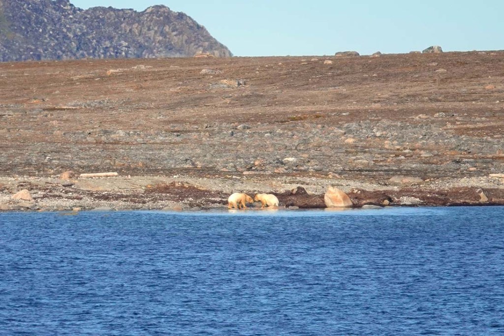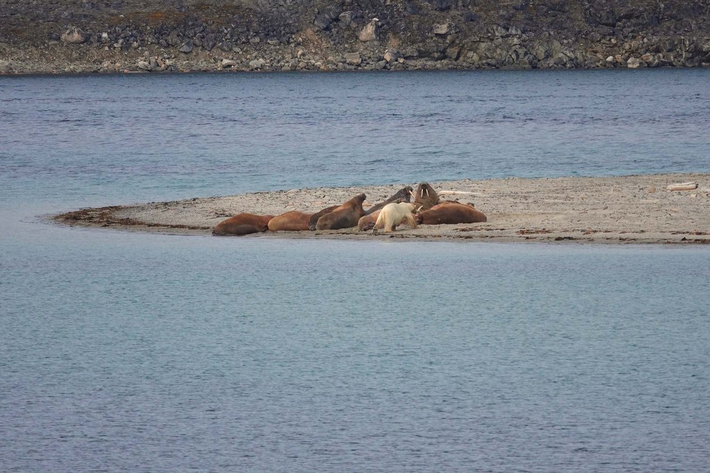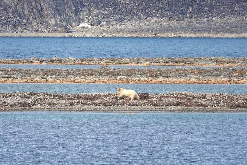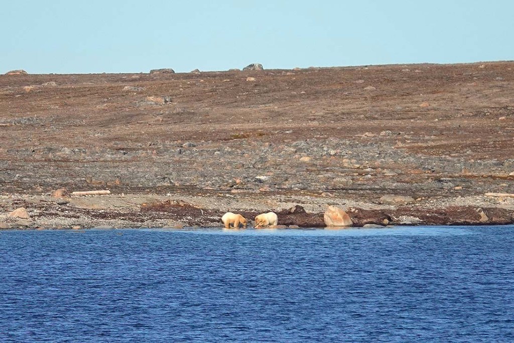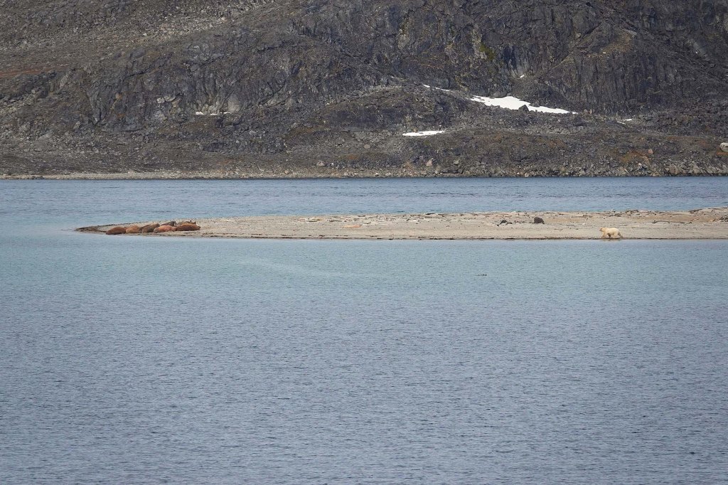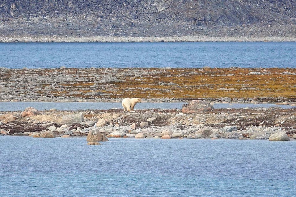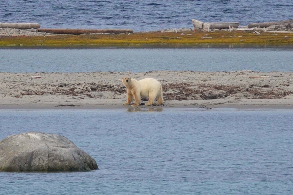 Population: estimation de 25’000-30’000 individus. Il est très difficile d’estimer précisément la population car l’ours polaire est un animal nomade. Certaines femelles sont équipées de colliers avec des traceurs GPS, mais il est impossible d’en installer sur les mâles car leur cou est de forme conique et le collier ne tient pas!