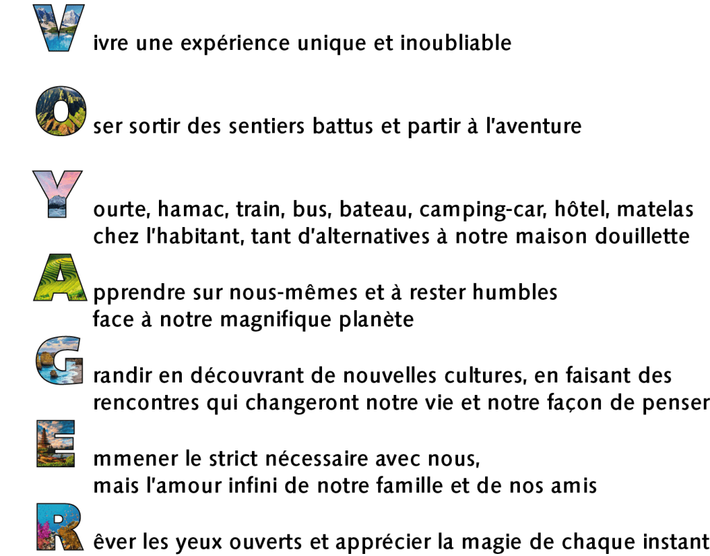 Nous sommes une famille de trois personnes composée d’Isabelle (Zaza) et Yann, tous deux âgés de 46 ans, et de leur fille Lola, âgée de 8 ans. Nous aimons les voyages et découvrir de nouvelles contrées. Durant la période du Covid-19, nous avons décidé de faire un tour du monde en famille et, après trois ans de préparation, notre rêve prend forme. Notre départ pour une année autour du monde devient réalité et le départ est prévu pour juillet 2023!